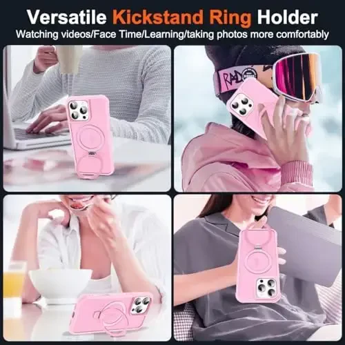 iPhone 16 Pro 6.3" SKYLMW Magnetic O-Ring Stand Case | MagSafe Compatible, Military Grade Protection, Pink