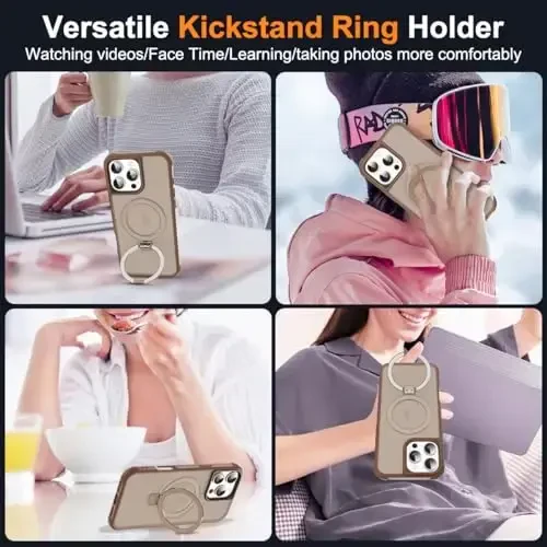 Introducing the SKYLMW iPhone 16 Pro Max case! This case combines elegance, durability, and functionality to provide excellent protection and usability for your phone. With military-grade drop protection, Mag-Safe compatibility, a convenient O-Ring stand, and a stylish design, this case is an indispensable accessory for your iPhone 16 Pro Max.Crafted from aerospace-grade aluminum, the magnetic O-Ring stand is a practical and versatile solution for your daily use. With an adjustable angle between 40° and 120°, you can enjoy hands-free video watching, video calls, or follow recipes. The stand can also be used as a ring holder, allowing you to hold your phone more securely and reduce the risk of dropping it. The versatility offered by the O-Ring stand makes your life easier and enhances the enjoyment of using your phone.The SKYLMW case is Mag-Safe compatible thanks to its 24 N52 magnets. This allows you to easily attach your Mag-Safe accessories and seamlessly charge with third-party Qi-certified wireless chargers. The strong magnets ensure the case can be used securely even in car phone holders. This feature is a great advantage, especially for those who enjoy using navigation apps while driving.Your phone's security is our priority. Therefore, the SKYLMW case offers military-grade drop protection. Thanks to the 4 large air cushions in the corners and the raised bezel design, the screen and camera lens are effectively protected against impacts. These features provide maximum protection against drops and scratches that your phone may encounter in daily use.The translucent design of the case preserves the original beauty of your phone while providing a stylish and modern look. The high-quality PC back surface and soft TPU edges provide an excellent grip and prevent slipping. In addition, the anti-fingerprint technology makes the surface of the case easy to clean and always keeps it clean.The SKYLMW iPhone 16 Pro Max case allows you to reflect your style while protecting your phone. The Desert Coffee color adds a sophisticated and elegant touch to the case. This case is not just a protector, but also a fashion statement. It is specially designed for the iPhone 16 Pro Max 6.9" model and provides a perfect fit.In short, the SKYLMW iPhone 16 Pro Max case is an excellent choice that offers superior protection, stylish design, and useful features for your phone. You can safely use your phone in your daily life while reflecting your style.