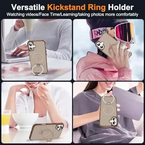 Этот чехол SKYLMW, разработанный специально для iPhone 16 Plus, сочетает в себе эстетичный внешний вид и превосходные защитные свойства. Цвет "Desert Brown" дополнит ваш стиль, а защита от падений военного класса и совместимость с Mag-Safe позволят вам безопасно пользоваться телефоном. Инновационная магнитная подставка O-Ring обеспечивает удобство использования и позволяет зафиксировать телефон под любым углом, освобождая руки. Чехол SKYLMW - идеальный аксессуар для вашего iPhone 16 Plus.Магнитное кольцо-подставка из авиационного алюминия регулируется в диапазоне от 40° до 120°, что позволяет выбрать наиболее удобный угол обзора. Это обеспечивает большое удобство при просмотре фильмов, видеозвонках или просто при использовании телефона на столе. Кроме того, функция кольца-держателя позволяет более надежно удерживать телефон и минимизировать риск его падения.Прочная магнитная конструкция с 24 магнитами N52 обеспечивает идеальную совместимость с аксессуарами Mag-Safe. Это позволяет удобно использовать зарядные устройства Mag-Safe и другие совместимые аксессуары. Даже при использовании в городе с автомобильными держателями для телефонов устанавливается прочное соединение, обеспечивающее надежное удержание телефона на месте. Он также оптимизирует процесс беспроводной зарядки, обеспечивая непрерывную и быструю зарядку.Защита от падений военного класса с обновленными четырьмя большими подушками безопасности и приподнятой рамкой защищает экран и линзу камеры от царапин и ударов. Он защищает ваш телефон от неожиданных падений, обеспечивая долговечность использования. Полупрозрачный дизайн сохраняет оригинальную красоту вашего телефона, а мягкие края из ТПУ обеспечивают удобный захват. Благодаря технологии защиты от отпечатков пальцев ваш чехол всегда выглядит чистым и стильным.Чехол SKYLMW для iPhone 16 Plus не только обеспечивает защиту, но и сочетает в себе простоту использования и стиль. Это идеальный выбор для тех, кто хочет безопасно использовать свой телефон, не жертвуя при этом своим стилем. Он разработан для полной совместимости с моделью iPhone 16 Plus 6,7 дюйма.