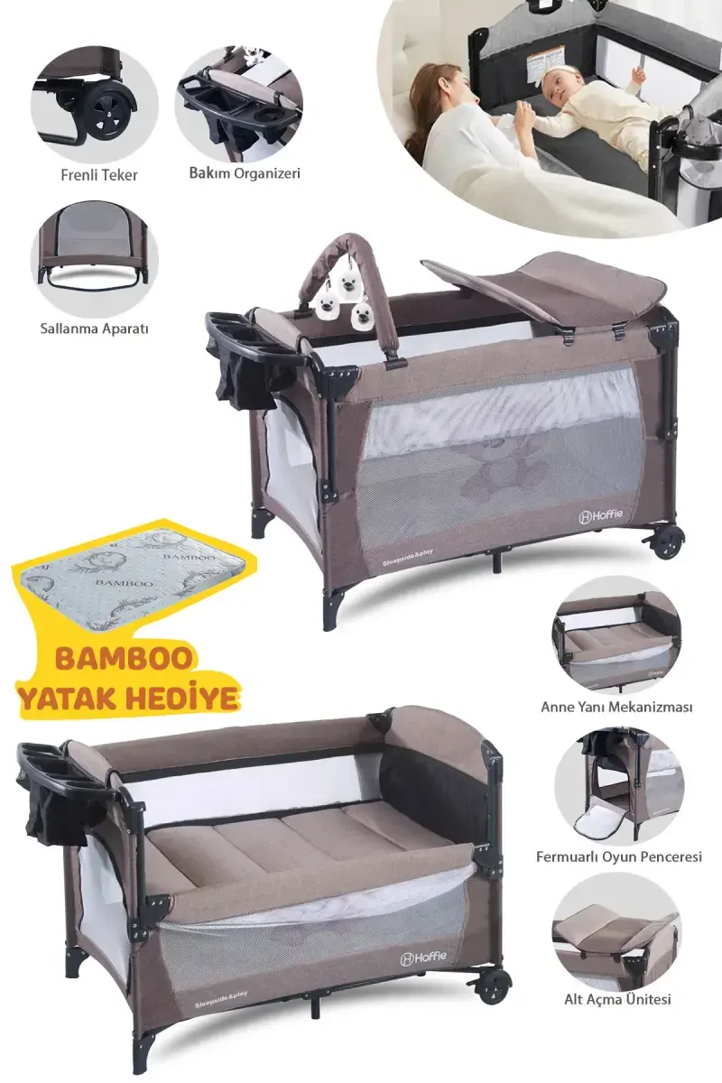 Sleep Side Play Anne Yanı Park Yatak, bebeğinizin ilk aylarından itibaren güvenle kullanabileceğiniz, çok yönlü bir uyku ve oyun çözümüdür. Bu beşik, modern yaşamın getirdiği ihtiyaçlar göz önünde bulundurularak tasarlanmış olup, anne yanı beşik, oyun parkı, sallanır beşik ve cibinlikli koruma gibi farklı işlevleri bir arada sunar. 70x110 cm boyutlarındaki geniş iç hacmi, bebeğinizin rahatça uyumasına ve hareket etmesine olanak tanırken, kahverengi şık tasarımı her türlü dekorasyona kolayca uyum sağlar. Üstelik, beşik ile birlikte gelen yatak hediyesi sayesinde, ek bir masraftan kurtularak bebeğiniz için hemen konforlu bir uyku alanı oluşturabilirsiniz. Anne yanı özelliği, özellikle yeni anneler için büyük kolaylık sağlar. Bebeğinizin gece boyunca yakınınızda olması, emzirme ve kontrol süreçlerini basitleştirir, anne-bebek arasındaki bağı güçlendirir. Bebeğinizin uyanması durumunda hemen müdahale edebilir, onu rahatlatabilirsiniz. Beşik, bebeğiniz büyüdükçe oyun parkına dönüştürülebilir, böylece güvenli bir oyun alanı yaratılmış olur. Bebeğinizin emekleme ve ilk adımlarını atma döneminde, etrafı keşfederken güvende olmasını sağlar. Sallanır beşik özelliği, bebeğinizin sakinleşmesine ve uykuya dalmasına yardımcı olur. Nazik sallanma hareketi, bebeğinizi anne karnındaki huzurlu günlerine götürerek rahatlamasını sağlar. Cibinlik ise özellikle yaz aylarında sinek ve böceklerden koruma sağlayarak bebeğinizin huzurlu bir uyku çekmesine katkıda bulunur. Hava alan yapısı sayesinde bebeğinizin terlemesini önler ve konforlu bir uyku ortamı sunar. Sleep Side Play Anne Yanı Park Yatak, sadece bir beşik değil, aynı zamanda bebeğinizin büyüme sürecinde ona eşlik edecek çok fonksiyonlu bir üründür. Yüksek kaliteli malzemelerden üretilmiş olup, bebeğinizin sağlığına zarar verecek hiçbir madde içermez. Güvenli ve sağlam yapısıyla uzun ömürlü kullanım sunar. Kolay kurulum özelliği sayesinde kısa sürede kullanıma hazır hale gelir. Pratik tasarımı sayesinde taşınması ve saklanması da kolaydır. Bebeğinizin konforu, güvenliği ve sizin rahatınız için Sleep Side Play Anne Yanı Park Yatak ideal bir seçimdir. Bu ürün, bebeğinizin ilk aylarından itibaren onunla birlikte olacak, ona güvenli ve konforlu bir ortam sunacaktır. Unutmayın, bebeğinizin sağlıklı gelişimi için doğru ürünleri seçmek çok önemlidir. Sleep Side Play Anne Yanı Park Yatak, bebeğinizin sağlıklı ve mutlu büyümesine katkıda bulunacak bir yatırımdır.
