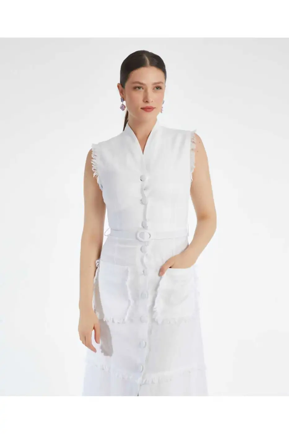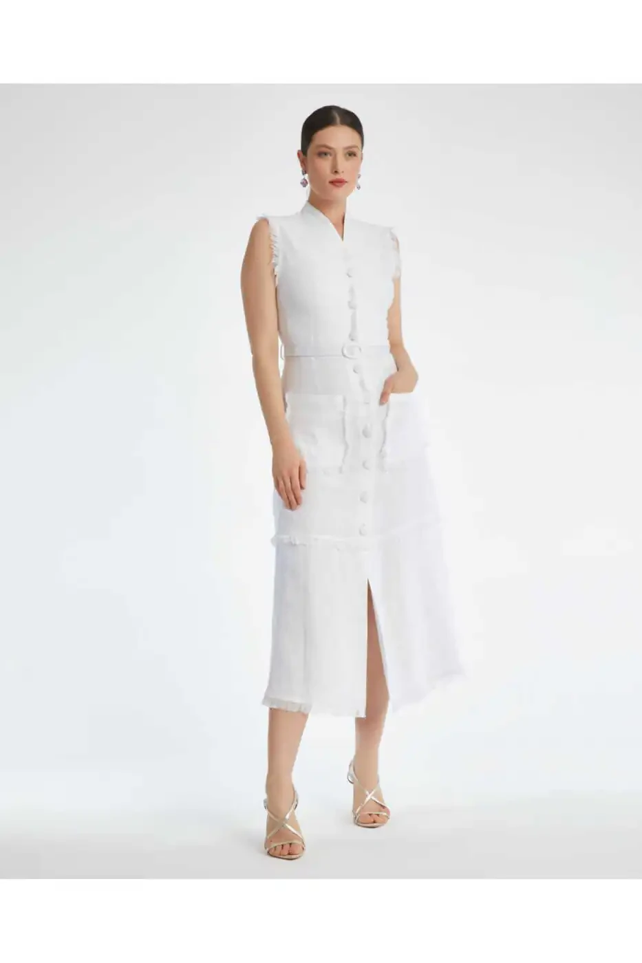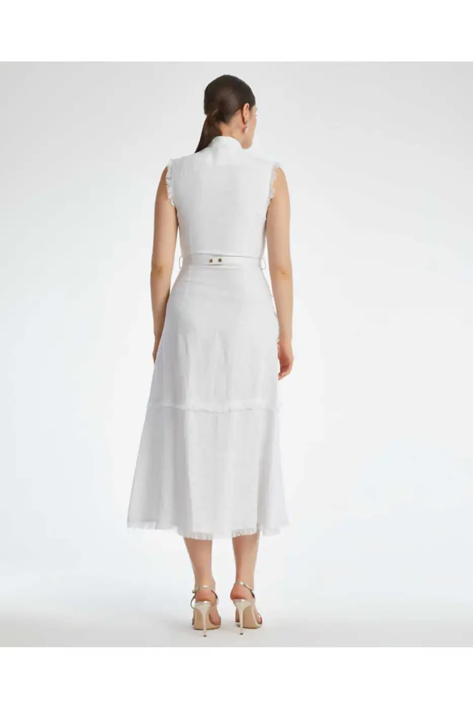 Experience the elegance and comfort of summer with the Sleeveless Textured Belted Midi Ecru Dress. This special design dress stands out with its textured fabric and stylish belt detail. The midi length offers an ideal option for both daily wear and special occasions, while the ecru color easily adapts to any setting. This dress, which will be an indispensable part of your wardrobe, will take your style to the next level.