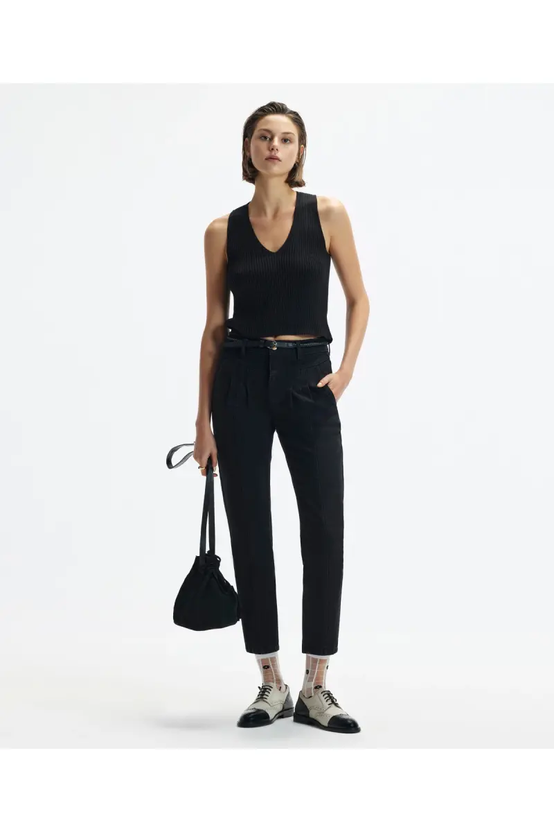 The sleeveless V-neck knit is a perfect choice to add style and comfort to your everyday look, destined to become an indispensable part of your wardrobe every season.