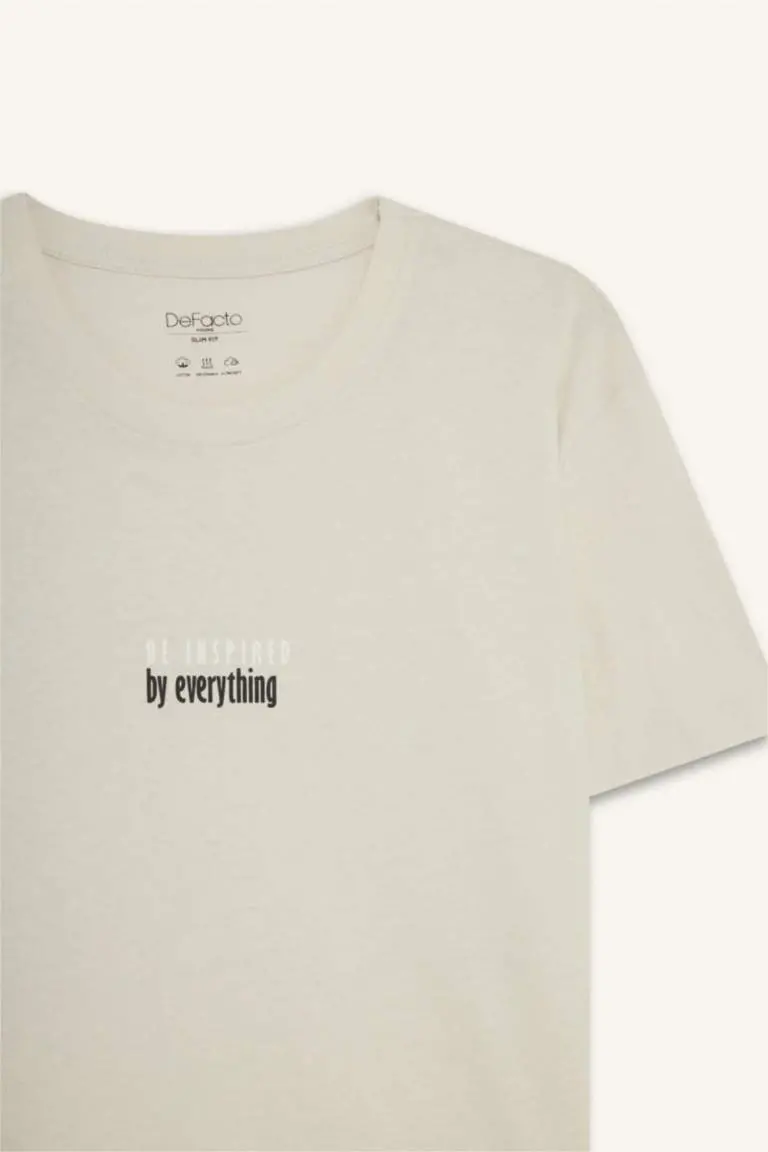 Slim Fit, bisiklet neck, printed, short sleeve t-shirt, sand color.