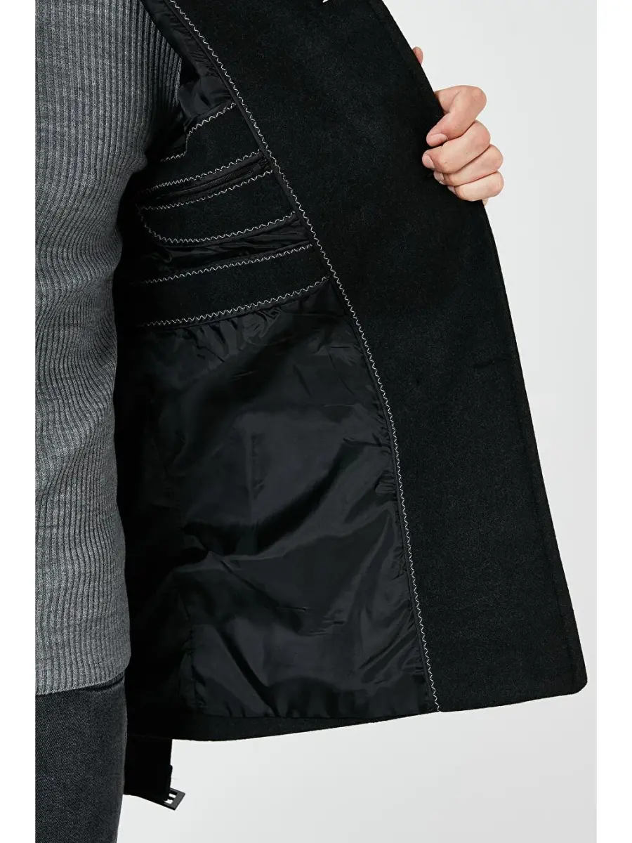 Erkek Dar Kesim Uzun Kaşe Kaban-Siyah