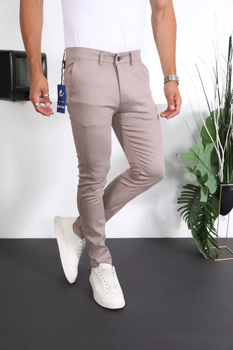 Slim Fit Chino Keten Pantolon - Bej, modern erkeğin gardırobunda olması gereken, stil sahibi ve çok yönlü bir parçadır. Tasarım koleksiyonumuza ait bu pantolon, slim fit kesimiyle vücuda mükemmel bir şekilde oturur ve şık bir siluet yaratır. Beş cepli tasarımı, hem fonksiyonel bir kullanım sunar hem de pantolona görsel bir zenginlik katar. Düz paça kesimi, klasik ve zamansız bir görünüm sağlarken, chino tarzı, pantolonu hem günlük hem de daha özel durumlar için uygun hale getirir. Pamuk, polyester ve spandex karışımından üretilmiş olan bu pantolon, orta kalınlığa sahip kumaşı sayesinde gün boyu konforlu bir kullanım deneyimi sunar. %60 pamuk içeriği doğal bir his verirken, %37 polyester kumaşın dayanıklılığını artırır ve %3 spandex ise esneklik sağlayarak hareket özgürlüğünüzü kısıtlamaz. Bej rengi, pantolonu kolayca kombinlenebilir kılar ve farklı renk ve stillerdeki üstlerle uyum sağlar. Casual ortamlarda, hafta sonu gezintilerinde veya daha şık etkinliklerde rahatlıkla tercih edebileceğiniz bu pantolon, tarzınızı her zaman bir adım öne taşır. Twill dokuma tipi, pantolona hafiflik ve nefes alabilirlik özellikleri kazandırır. Bu sayede sıcak havalarda bile terlemeden, rahat bir kullanım imkanı sunar. Kırışmaya dayanıklı özelliği sayesinde pantolonunuz her zaman ütülü gibi görünür ve bakımı kolaydır. Sık yıkamalarda bile şeklini ve rengini korur, böylece uzun ömürlü bir kullanım sunar. Astarlı yapısı, ekstra konfor ve destek sağlarken, normal bel kesimi geniş bir kullanıcı kitlesine hitap eder. Kemerli tasarımı, pantolonu kendi stilinize göre ayarlamanıza olanak tanır. İster klasik bir kemerle daha resmi bir görünüm elde edin, ister daha spor bir kemerle günlük tarzınızı tamamlayın. Slim Fit Chino Keten Pantolon - Bej, sadece şık bir görünüm sunmakla kalmaz, aynı zamanda kullanım kolaylığı ve dayanıklılığı ile de öne çıkar. Gardırobunuzun vazgeçilmez bir parçası olacak bu pantolon ile her zaman kendinizi iyi hissedeceksiniz.