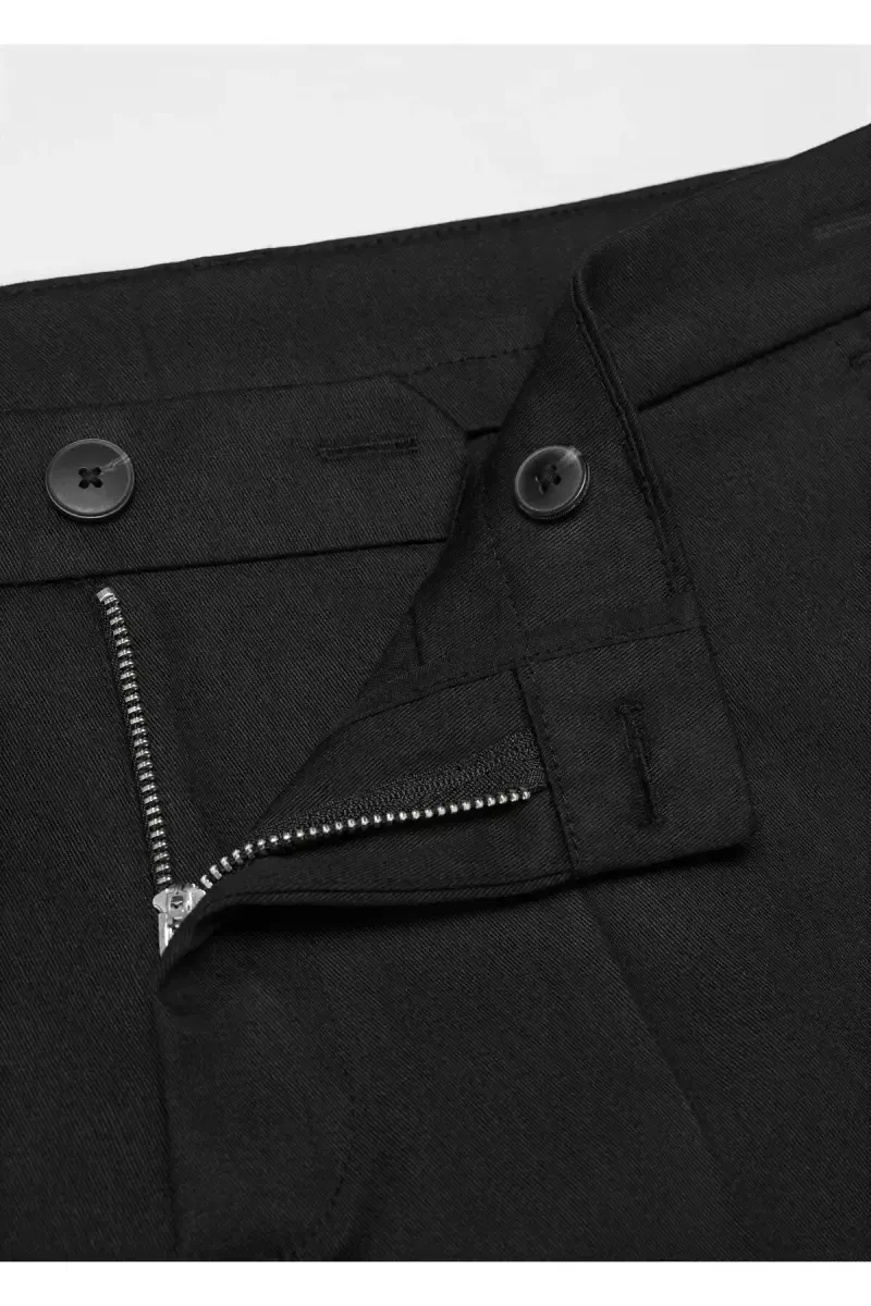 Slim fit chino trousers. Made of cotton fabric. Side pockets. Button and zipper closure.Product DescriptionMeet the slim fit chino trousers, which are candidates to be an indispensable part of your wardrobe and offer elegance and comfort together. These trousers are an ideal option for both daily use and special occasions with their modern and elegant appearance. Thanks to its high-quality cotton fabric, it offers a comfortable use all day long, while its slim fit perfectly reveals your body lines. The noble and timeless tone of black adapts to all kinds of combinations and completes your style. You can achieve a professional look by combining it with a shirt and blazer in business life, or you can create a comfortable and stylish style with a T-shirt and sneakers on the weekend. Slim fit chino trousers are the perfect choice for men who care about both elegance and comfort. Combining classic and modern details, these trousers are candidates to be the most loved piece of your wardrobe. Thanks to its button and zipper structure, it can be easily put on and taken off. Side pockets allow you to safely carry your personal belongings such as keys and phones. Thanks to the quality of its fabric, it offers a long-lasting use and maintains its original form even after washing. Black color can be easily combined with outerwear products in different colors and patterns, so you always get a stylish and harmonious look. Reflect your style with slim fit chino trousers and attract attention in every environment. These trousers are not just a piece of clothing, but also a style statement. It is an investment that will make you feel good, increase your self-confidence and always make you look stylish. These trousers, which should definitely be in your wardrobe, will complement the style of every man and help him reflect his personality.Product Features* Slim fit* Cotton fabric* Side pockets* Button and zipper closure* Black colorAdditional InformationModel's size: 32. Product content: 100% Cotton. Machine washable at 30 degrees. Ironing suggestion: Iron inside out at low temperature.