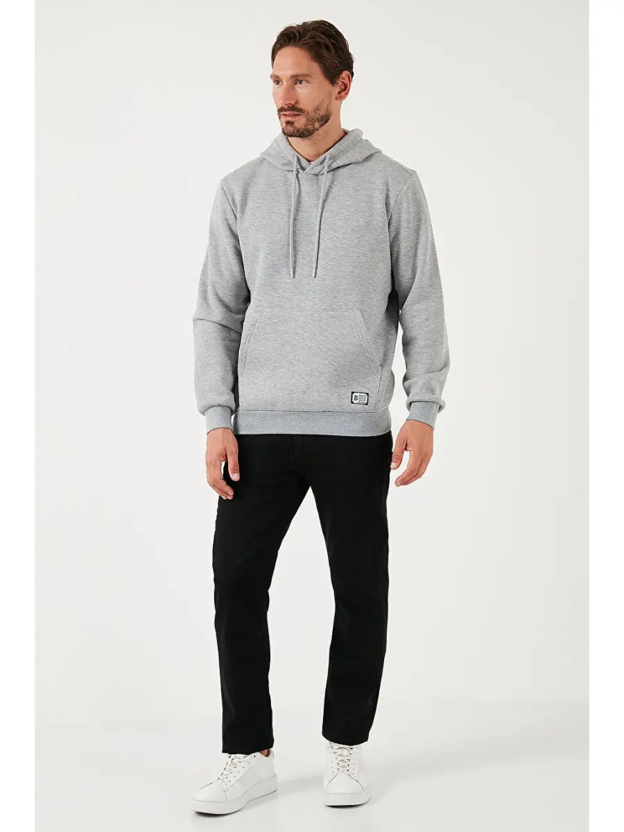 Meet the Slim Fit Hooded Kangaroo Pocket Fleece Lined Soft Carded Men's Hoodie that will keep you stylish and comfortable in cold weather! Designed with Markastok Buratti quality, this hoodie is a candidate to be an indispensable part of the modern man's wardrobe. Thanks to its narrow and slim fit cut, it fits your body perfectly, while its 3-thread structure and fleece-lined soft brushed fabric keep you feeling warm and comfortable all day long. The hooded design protects you against sudden weather changes, while the kangaroo pocket detail adds a different touch to your style and allows you to carry your small items safely. This long-sleeved hoodie keeps you warm from the cold and easily adapts to all your combinations with its gray color. Whether in your daily activities, weekend getaways, or while doing sports; The Slim Fit Hooded Kangaroo Pocket Fleece Lined Soft Carded Men's Hoodie will always be with you and will help you reflect your style. Enjoy being stylish and comfortable even in cold weather with this hoodie, where quality material, careful workmanship and modern design come together. Add this piece that will be indispensable to your wardrobe to your cart now and feel the difference!