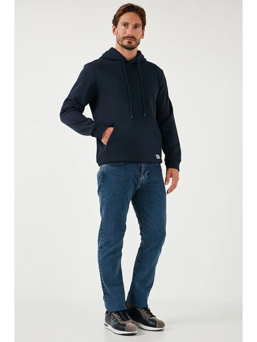 Markastok Buratti Slim Fit Hooded Kangaroo Pocket Plush Lined Soft Fleece Men's Hoodie features a special design that combines elegance and comfort. This navy blue hoodie is a must-have piece in the modern man's wardrobe. Its slim fit cut offers a stylish look with its body-hugging structure, while its 3-thread technology guarantees its durability and long-lasting use. The hooded design protects your head in cold weather, while the kangaroo pocket offers practical use. The plush fleece lining on the inside provides a warm and soft feel all day long. With these features, it is an ideal choice for both daily use and sports activities. This hoodie stands out with its high-quality material and careful workmanship. The noble and modern stance of the navy blue color easily adapts to different combinations. You can create different styles by combining it with jeans, sweatpants or chino pants. The long-sleeved design provides extra protection in cool weather, while the hood detail offers a useful feature on windy days. This hoodie, produced with Markastok Buratti quality, is an excellent choice for men who care about both elegance and comfort. It offers comfort and elegance together in daily use, while helping you reflect your style at special events. You can always feel stylish and comfortable with this hoodie, which will be an indispensable part of your wardrobe. Thanks to its furry interior, it keeps you warm in cold weather and offers comfortable use. Thanks to its slim fit, it hugs your body and allows you to achieve a fit look. It adapts to every combination with its navy blue color, highlighting your elegance. Reflect your style with Markastok Buratti Hoodie and attract attention in every environment. It offers long-lasting use with high quality material and careful workmanship. This hoodie is not just a garment, but also a lifestyle. It is an ideal choice for men who want to be both stylish and comfortable.