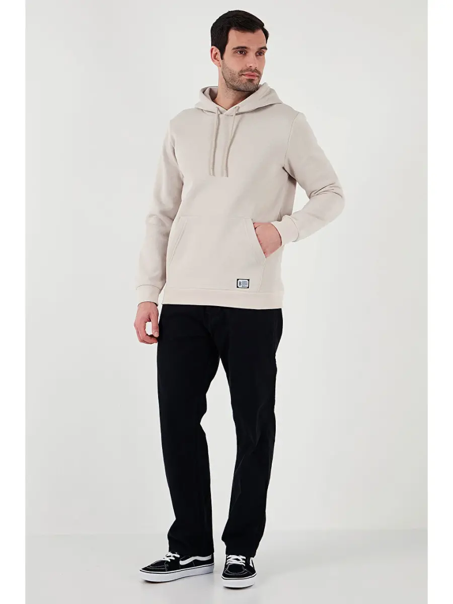 The Slim Fit Hooded Kangaroo Pocket Fleece Lined Soft Brushed Men's Hoodie is an ideal choice for men who want to look stylish and stay warm in cold weather. Produced with Markastok Buratti quality, this hoodie offers a modern look by fitting the body thanks to its narrow and slim fit. The three-thread technology increases the durability of the hoodie, while the soft brushed lining on the inside provides unique comfort throughout the day. The off-white color easily adapts to any combination and will be an indispensable part of your wardrobe. Whether in your daily activities, while doing sports, or in weekend comfort, you can always feel stylish and comfortable with this hoodie. The hooded design protects your head in windy weather, while the kangaroo pocket detail offers a useful area to warm your hands or carry your small items. The slim fit cut reveals your body lines without restricting your freedom of movement. This hoodie is a perfect choice for men who want both elegance and comfort. The timelessness of the off-white color will allow you to use this hoodie with pleasure for many years. You can easily combine it with other pieces in your wardrobe and create different styles. Thanks to its high-quality material structure, this hoodie offers long-lasting use and maintains its original form even after washing. Produced with Markastok Buratti's careful workmanship, this hoodie makes you feel quality in every detail. Feel special with the Slim Fit Hooded Kangaroo Pocket Fleece Lined Soft Brushed Men's Hoodie, the easiest way to stay warm and look stylish in cold weather.