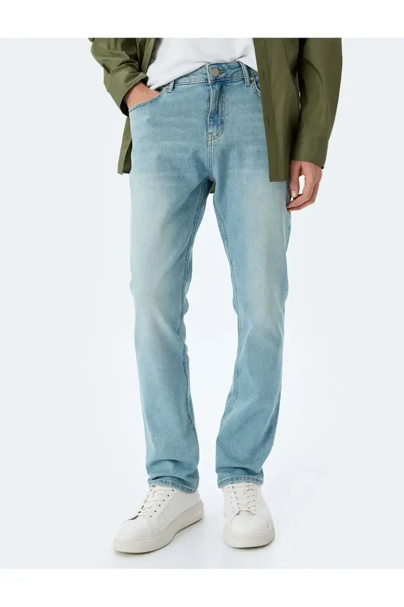 Enjoy being stylish and comfortable at all times with Slim Fit Jeans - Brad Jean! These pants are a must-have in the modern man's wardrobe. Thanks to its slightly tapered cut from the knee to the ankle, it fits your body perfectly and does not restrict your freedom of movement. Brad Slim Fit Jeans have a versatile design that can adapt to any environment, whether for daily use or a special day. You can show off your style by combining it with your oversized t-shirts, achieve a comfortable look with sneakers, or create a more formal style with a stylish shirt and jacket. This product, offered with Trendyol assurance, offers long-lasting use with its quality fabric and careful workmanship. The indigo dye used in production gives your trousers a unique color and character. Remember, it may give off some color to your clothes during the first wash, so it is important to wash it inside out and alone for the first wash. In subsequent washes, you can wash it inside out and with your colored laundry. Offering all-day comfort with its normal waist height and straight cut, Brad Slim Fit Jeans will be an indispensable part of your wardrobe. The model is 186 cm tall, has 99 cm hips, 77 cm upper body, L waist, 95 cm chest and 30/32 jean size. Order now to have these stylish and comfortable trousers!