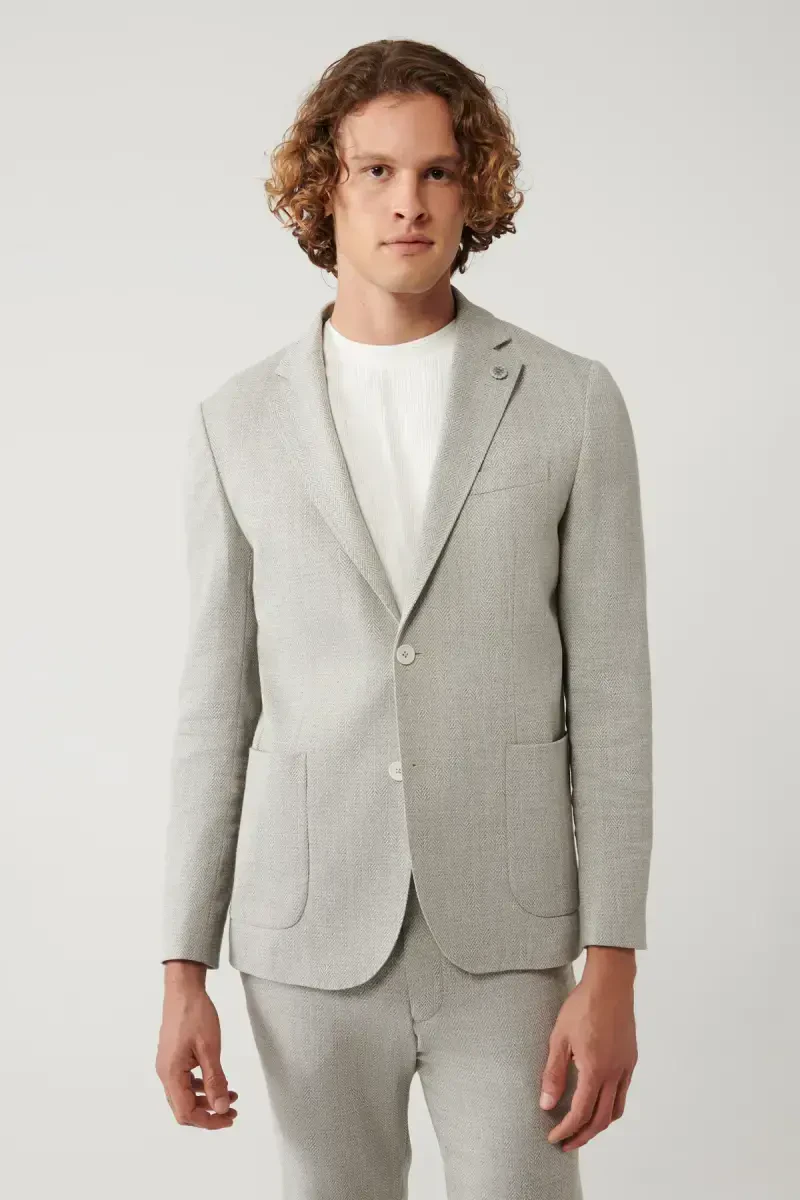 Mono Collar, Unlined, Linen Blend, Fake Pocket, Double Vent, Woven Fabric Comfort Slim Fit Suit Jacket. Colors may vary due to lighting differences in Studio Shoots. It is an AVVA Classic Collection product. Model Height: 188 cm. Chest: 98 cm. Waist: 74 cm. Hips: 98 cm. Sample Size: 48