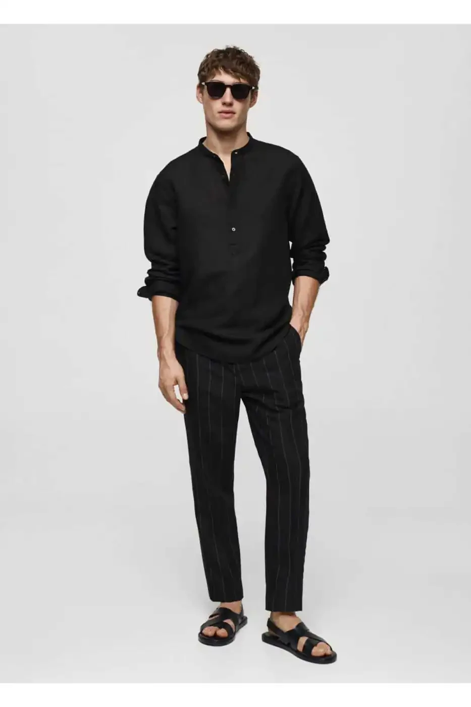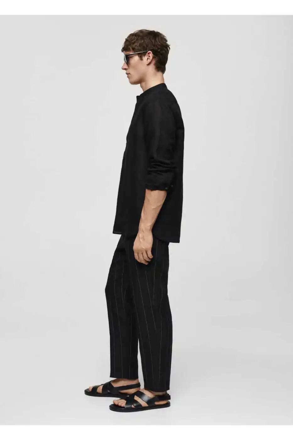 **Slim Fit Striped Linen Pants**These sleek linen pants from [page='merchant_info']Trendyol[/page] will become a wardrobe staple with their elegant style and comfortable fit.**Features:*** Slim fit with subtle striped pattern* Linen and lyocell blend fabric* Belt loops, concealed button, hook and bar, and zip closure* Two front pockets, two buttoned welt back pockets* Model is 185 cm tall and wears size 42**Materials and Care:*** 74% lyocell, 24% linen, 2% elastane* Lining pocket: 65% polyester, 35% cotton* Machine wash max 30°C* Do not bleach* Iron max 110°C* Do not dry clean* Do not tumble dry**Measurements:*** Inside leg length: 80.9 cm* Side seam length: 109 cmBenefit from Trendyol's discounted price with over 5 items in stock. You can order a maximum of 10 items. You have the right to return within 15 days for free. For more information, please [page='return_conditions']click here[/page].