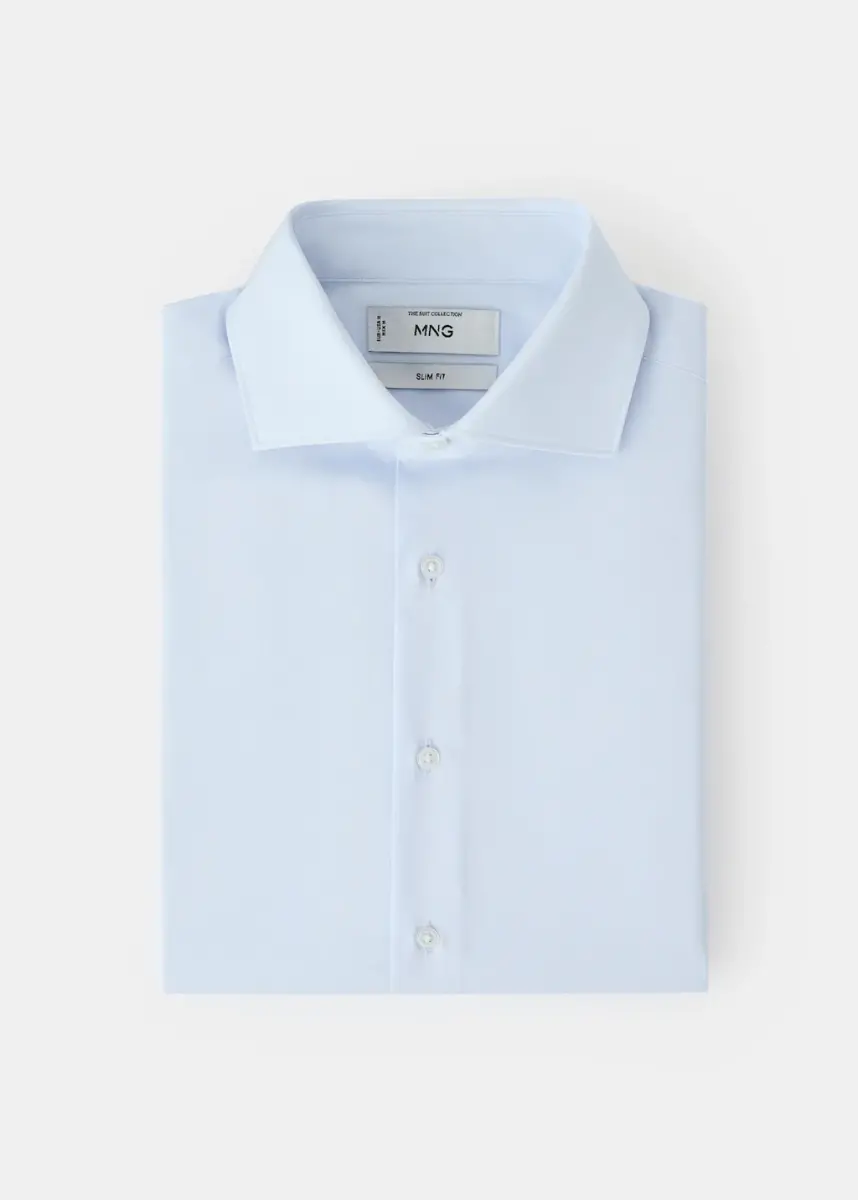 Slim fit pamuklu poplin gömlek - Gök Mavisi