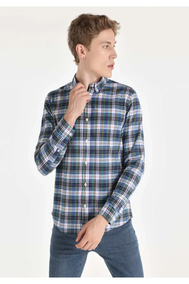 With its slim fit that sits close to the body, checkered pattern, and colorful design, this long-sleeved men's shirt will be one of the indispensable pieces of your wardrobe. This shirt, which will complete your elegance both in daily use and on special occasions, helps you reflect your modern and unique style. Thanks to its cotton fabric, it offers comfort all day long, while its non-sweating structure provides a comfortable wearing experience.**Product Description**Take your style to the next level with the Slim Fit Checkered Multi-Colored Men's Long Sleeve Shirt. This shirt stands out as a must-have piece in the modern man's wardrobe. With its slim fit, it fits your body perfectly and creates a stylish silhouette, while its checkered pattern and vibrant colors offer a striking look. The multi-colored design of the shirt allows you to make different combinations and adapts to any environment. Whether you create a sporty style with jeans or a more formal look with classic trousers, this shirt complements your style in any situation. Its cotton fabric offers comfortable use all day long. Thanks to its non-sweating structure, you will feel comfortable even in hot weather. Its long-sleeved design keeps you warm in cool weather and prevents you from sacrificing your elegance. The high-quality stitching and durable material of the shirt offer a long-lasting use. This shirt is an ideal choice for both daily use and special occasions. You can easily choose it for a business meeting, dinner, or weekend trip. This shirt, which will be indispensable for stylish men, is a candidate to be one of the most popular pieces of your wardrobe. With its slim fit, checkered pattern, multi-colored design, and cotton fabric, this shirt offers elegance and comfort together. This shirt, which can be worn in all seasons, adds a different dimension to your style and ensures that you always look well-groomed and stylish. If you want to reflect your modern and unique style, this shirt is for you! The quality of the fabric and the workmanship of the shirt ensure that it looks like the first day for many years. In this way, you will have a piece that you can store in your closet for a long time and wear with confidence at any time. This shirt is not just a piece of clothing, but also a style statement. It helps you feel good and increase your self-confidence. Every time you wear it, you will make a difference with your style and attract the attention of the people around you. Renew your wardrobe and take your style one step further with the Slim Fit Checkered Multi-Colored Men's Long Sleeve Shirt!**Product Features*** Slim fit* Checkered pattern* Multi-colored design* Long sleeve* Cotton fabric* Non-sweating structure**Additional Information**Model's size: M. Product content: 100% Cotton. Wash according to washing instructions.