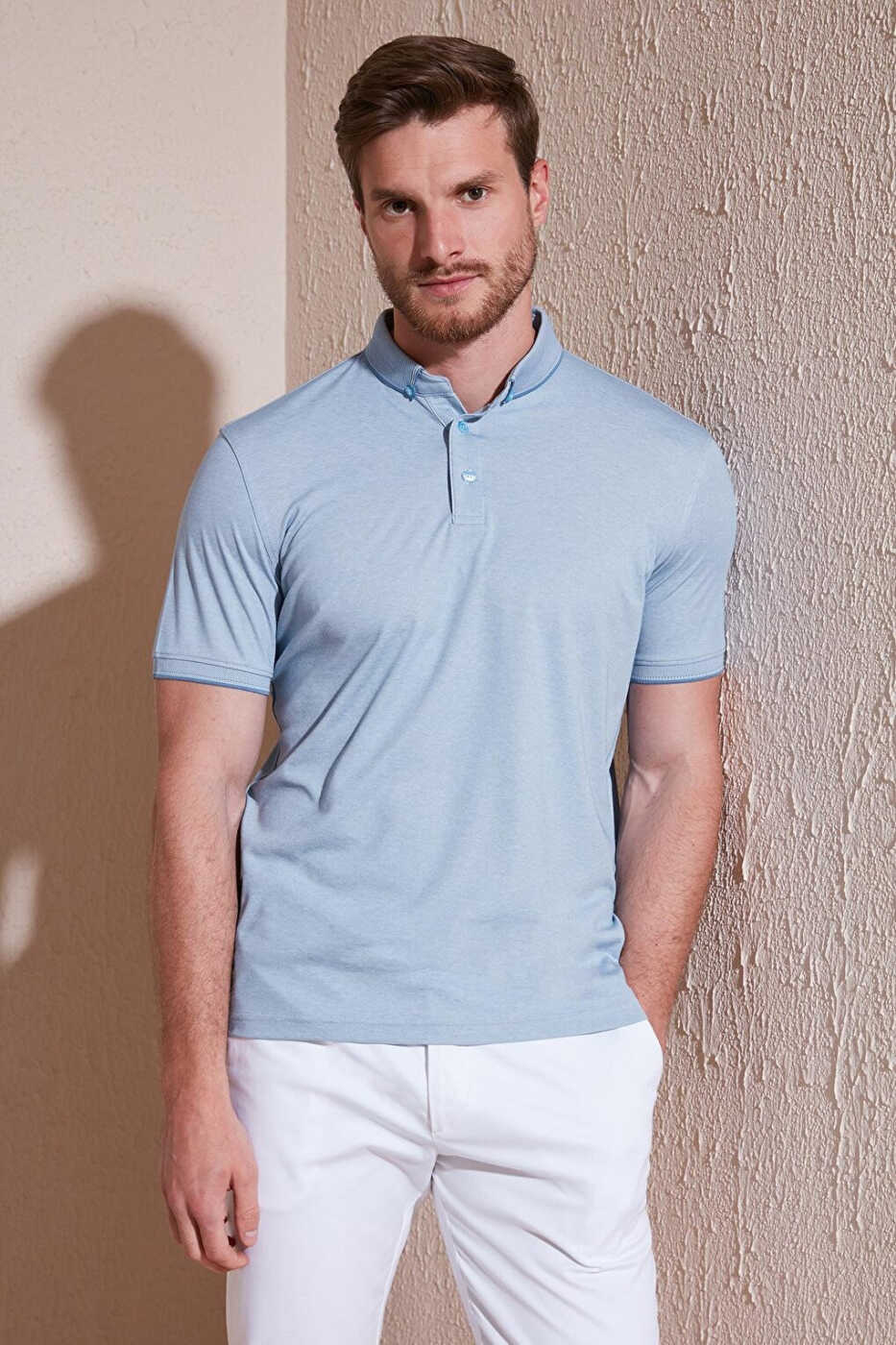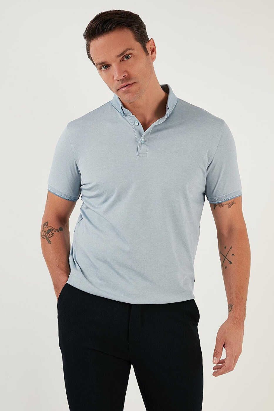 Slim Fit Polo Yaka Qisqa Yengli Erkaklar Ko'ylagi 646R1000ning Xususiyatlari: