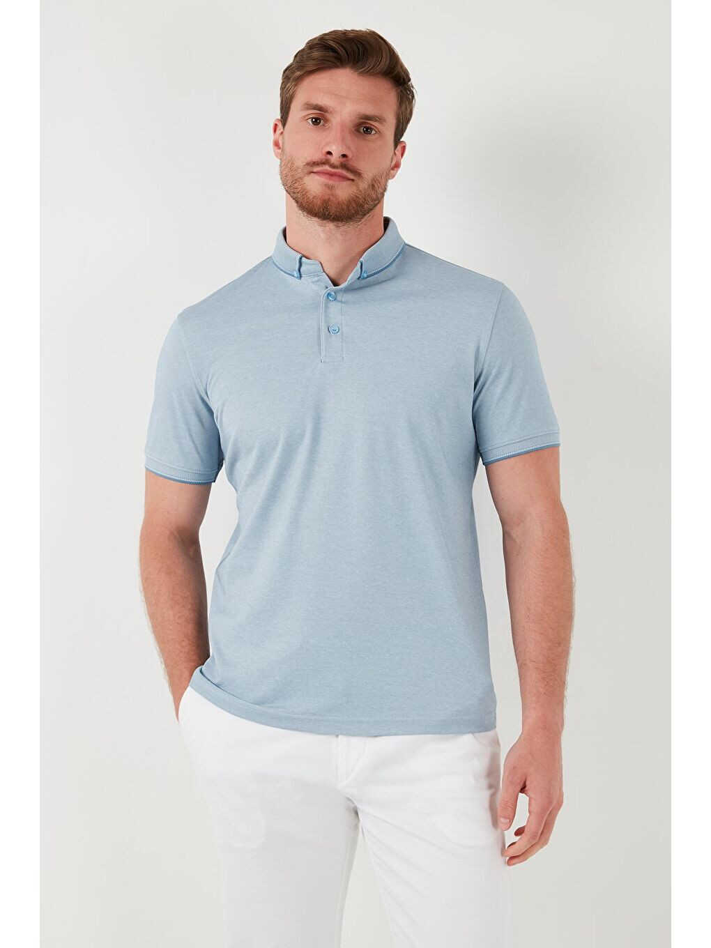Slim Fit Polo Yaka Qisqa Yengli Erkaklar Ko'ylagi 646R1000 bilan har doim zamonaviy va qulay bo'ling!
