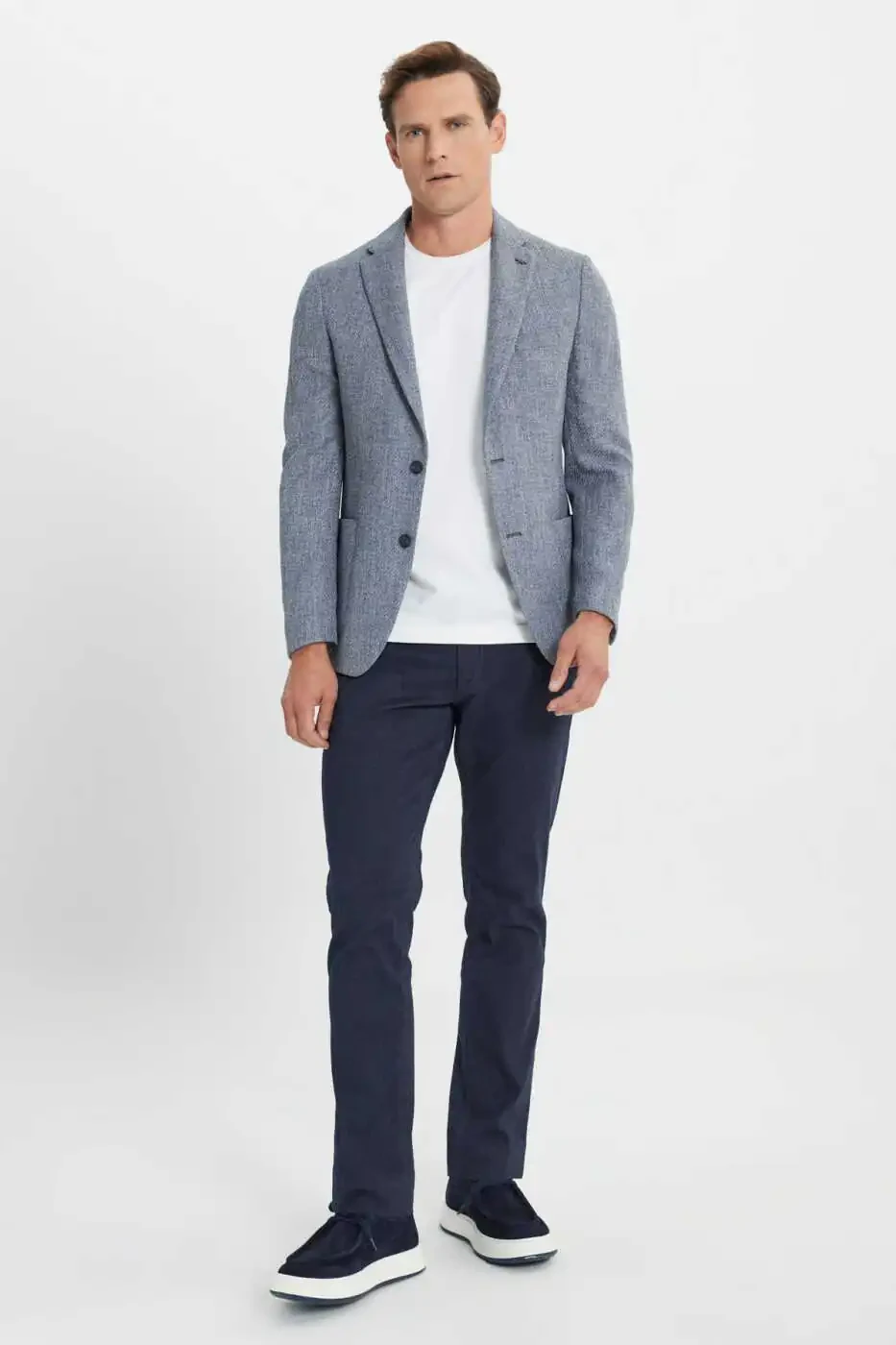 Пиджак изготовлен с тщательным мастерством и из высококачественных материалов для долговечности. Внимание к мелким деталям гарантирует, что наш пиджак будет одновременно визуально привлекательным и удобным в носке. Узкий крой подчеркивает ваши формы, не жертвуя свободой движений. Дизайн воротника-стойки придает пиджаку изысканность и легко сочетается с различными комбинациями. Рисунчатая ткань придает пиджаку уникальный характер и выделяет его из толпы. Карманы-торбы дополняют элегантность и предлагают практичное пространство для ваших повседневных вещей. Темно-синий цвет известен своей универсальностью и подходит для любого сезона и стиля. Этот пиджак легко сочетается как с классическими, так и с современными вещами. Создайте непринужденный стиль с джинсами и кроссовками или более формальный образ с брюками и элегантной обувью, этот пиджак всегда будет правильным выбором. Этот пиджак, произведенный с качеством DEMİRCANLAR, станет звездой вашего гардероба на долгие годы и поднимет ваш стиль на новый уровень.