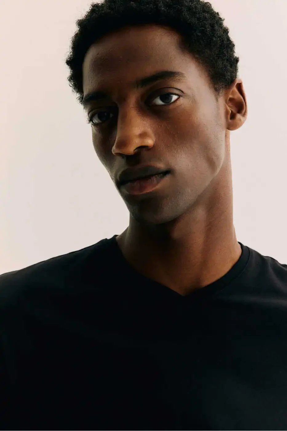 The Slim Fit V-Neck T-Shirt is the perfect choice to complete your everyday style, combining style and comfort. The V-neck elongates your neck and creates a more sophisticated look. The slim fit hugs your body perfectly, making you look more elegant.