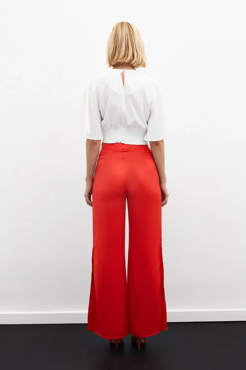 The Slit Detail Satin Pants are a unique design that offers both elegance and comfort. The soft texture of the satin fabric feels lovely against your skin, while the relaxed fit of the pants ensures all-day comfort. The high-quality satin fabric allows the pants to drape gracefully and accentuate your figure flawlessly. The slit detail at the hem adds a modern touch to your style without restricting your freedom of movement. The energy of the coral color adds vibrancy to any outfit, and you can easily combine the pants with different colors. Whether you create a chic look with heels or a more relaxed style with sneakers, these pants will accompany you in any situation. The Slit Detail Satin Pants are not just a garment but also a form of expression. These pants will make you feel free and confident and are the most stylish way to reflect your style. This piece, which should definitely be in your wardrobe, will adapt to the trends of every season and will accompany you for many years. Enjoy being stylish anytime, anywhere with Slit Detail Satin Pants. These pants are not just clothing but also a lifestyle. Choose these pants to feel special and valuable and to show your difference. Every detail is carefully designed to offer you a perfect look while maintaining your comfort. The high-waisted cut enhances your figure, while the slit detail makes your legs look longer and slimmer. Trust yourself with every step and let your style speak with Slit Detail Satin Pants. These pants will make you feel special and add value to every combination.