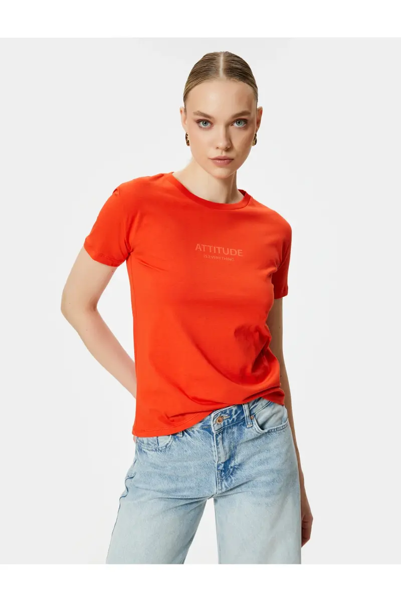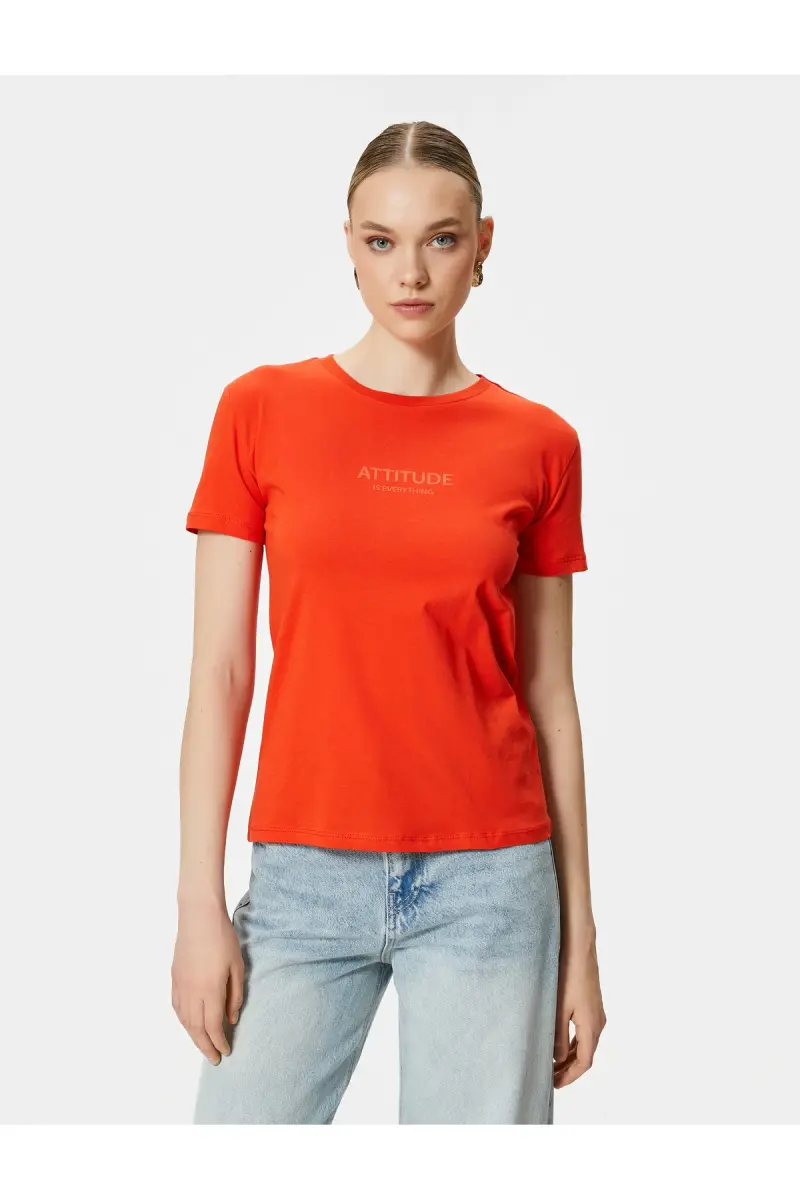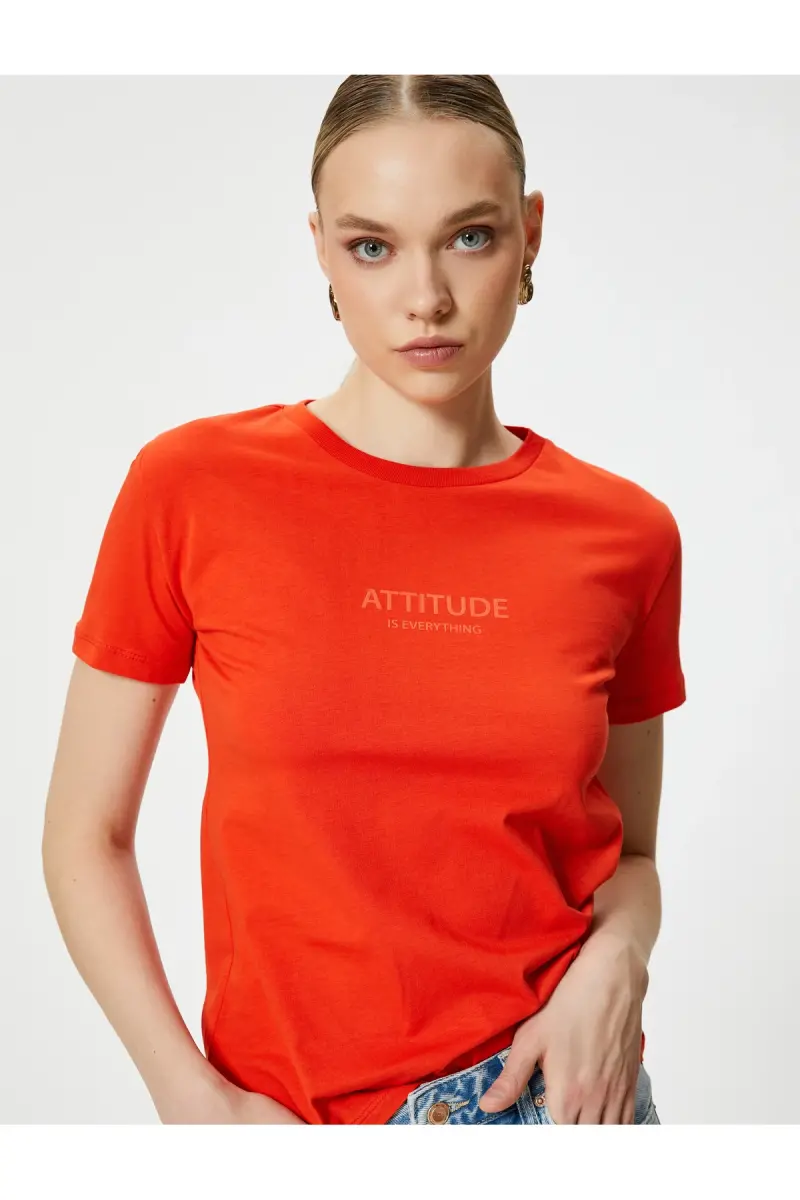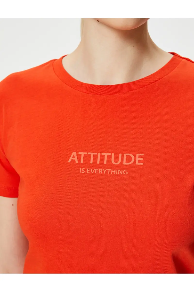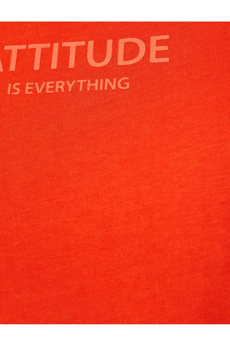 Slogan Baskılı Tişört Bisiklet Yaka Kısa Kollu Pamuklu-Kırmızı