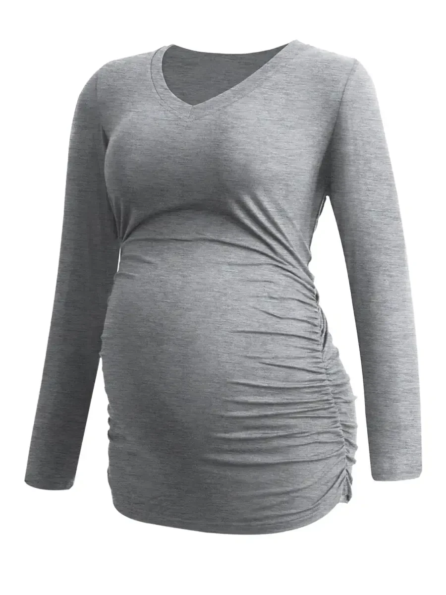 Specially designed for you to experience all the beauty and comfort of pregnancy, the Smallshow V-Neck Long Sleeve Maternity Tops will be an indispensable part of your wardrobe with its 3-pack option. These lightweight and comfortable tops are long enough to perfectly cover your growing belly, and thanks to the shirred details on the sides, they adapt to your body throughout your pregnancy. Designed with expectant mothers in mind, these tops hug your body with their comfortable fit and create an elegant silhouette, while keeping you feeling fresh all day long. The V-neck detail offers both elegance and comfort. Thanks to its breathable fabric, it allows your skin to breathe and helps you feel comfortable all day long. Smallshow Maternity Tops are a perfect choice not only for daily use, but also for special occasions. You can achieve a stylish look by combining it with a stylish skirt or trousers. Also, these tops, which are extremely suitable for the breastfeeding period, offer a practical and comfortable use. You can comfortably use these tops in the postpartum period as well, and they will be among the indispensable pieces of your wardrobe for a long time. Offered in three different color options, you can find a color to suit every taste in this package. Ideal for daily use, these tops are a perfect choice for expectant mothers looking for a stylish and comfortable style. Smallshow, the best choice for your maternity wardrobe! A great gift you can give to your loved ones or yourself.