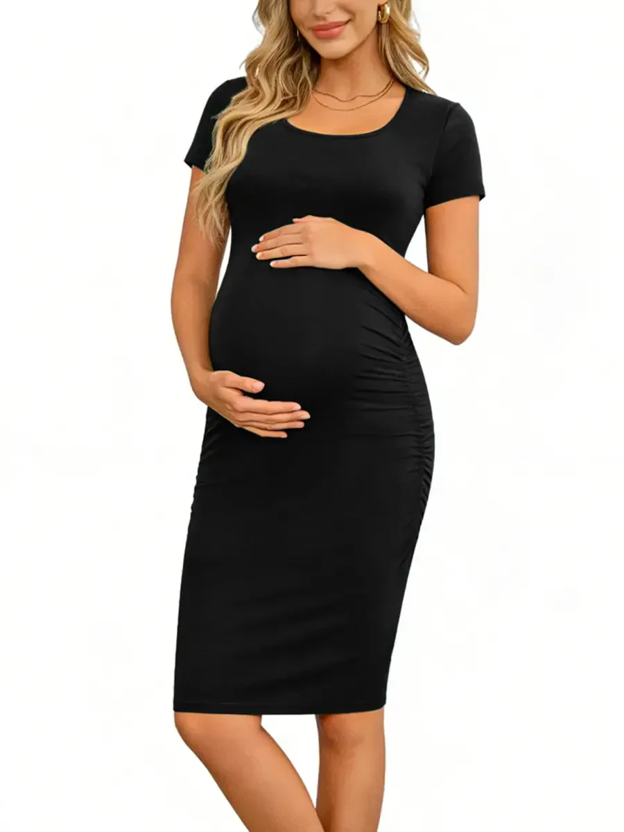 Pregnancy is a special and exciting time in a woman's life. Having clothes that offer both comfort and style during this period is every expectant mother's right. The Smallshow Women's Short Sleeve Maternity Dress is designed to meet these needs. Its soft and stretchy fabric gently hugs your body, adapts perfectly to your growing belly, and guarantees your comfort throughout the day. The ruched detail on the sides adds a modern look and perfectly adapts to your changing body lines. This dress is versatile enough to accompany you through every stage of your pregnancy and make you feel stylish at all times. With its simple and elegant design, the Smallshow Maternity Dress can be worn in any setting, from everyday life to special occasions. Whether you're attending a brunch with friends, going to your baby's first ultrasound appointment, or dazzling with your elegance at a birthday party, this dress will always be the right choice. The dress's short-sleeved design keeps you cool and comfortable, especially in hot weather. The knee-length is both stylish and practical. You can create different and unique styles by combining this gorgeous dress with a jacket, cardigan or a stylish shawl. You can personalize your look as you wish by completing it with flats, sandals or heels. The Smallshow Maternity Dress is not just a dress, it is also an expression of your self-confidence and beauty. This dress, which will allow you to spend every moment of your pregnancy in a stylish and comfortable way, will become an indispensable part of your wardrobe. You can also pose wonderfully in this dress during your prenatal photo shoots and immortalize your unforgettable moments in style. The Smallshow Maternity Dress is an ideal option for expectant mothers to achieve comfort without sacrificing elegance.