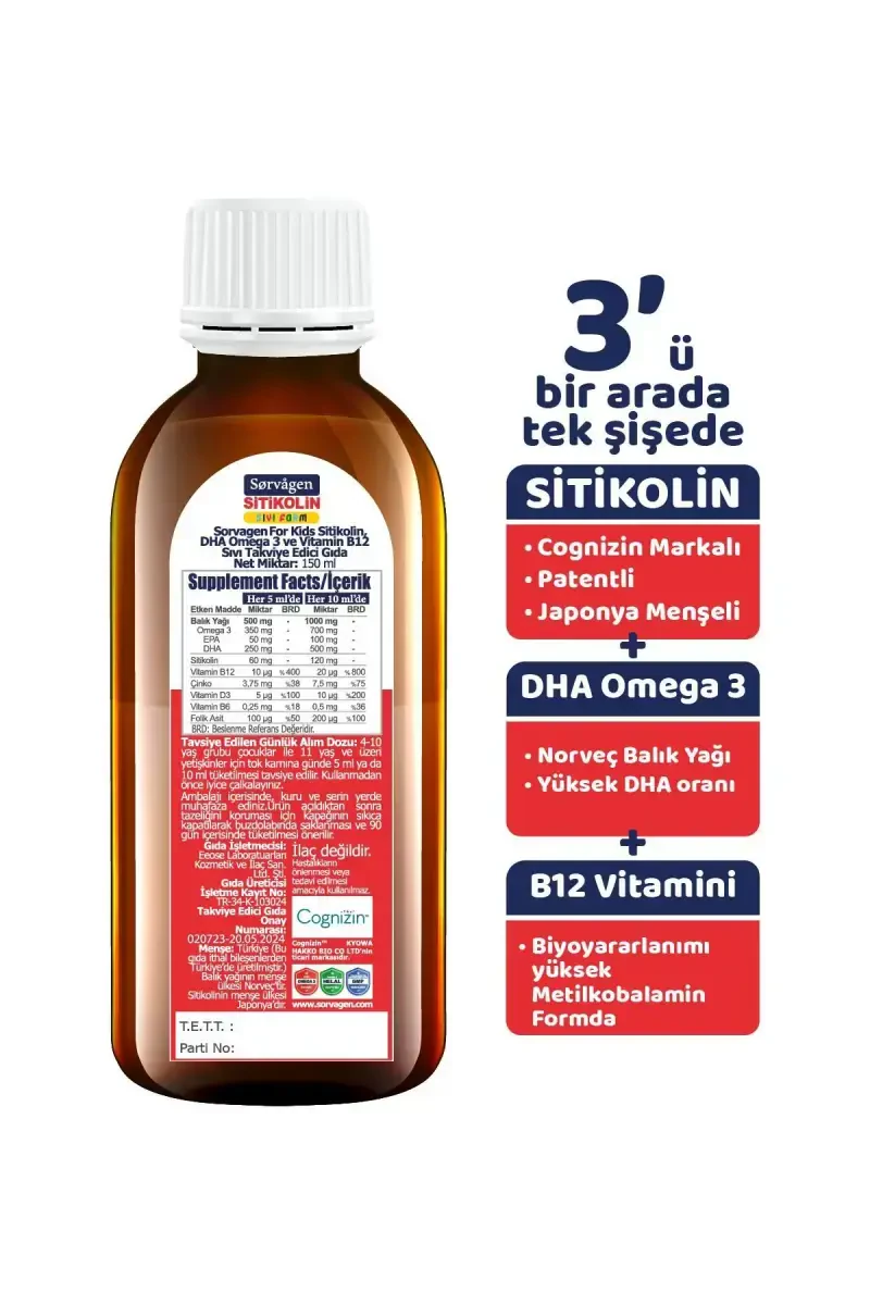 Smart Kids Liquid Form - Citicoline, DHA Omega 3 Norwegian Fish Oil and B12 - 150 ml