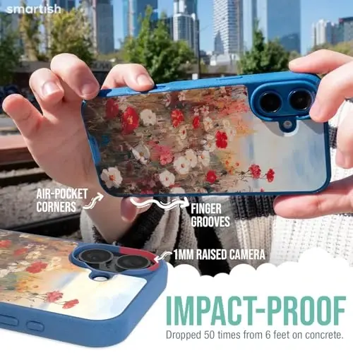 iPhone 16 G‘ilofi - Smartish Gripmunk MagSafe mos, tushishga chidamli, Wildflower Fields dizayni
