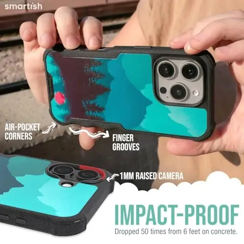 Smartish® iPhone 16 Plus Protective Magnetic Case - Gripzilla Compatible with MagSafe [Rugged + Tough] Heavy Duty Armor Slim Cover w/Drop Tested Protection for Apple iPhone 16 Plus - Moving Mountains