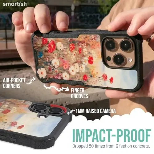 Smartish® iPhone 16 Plus Protective Magnetic Case - Gripzilla Compatible with MagSafe [Rugged + Tough] Heavy Duty Armor Slim Cover w/Drop Tested Protection for Apple iPhone 16 Plus- Wildflower Fields