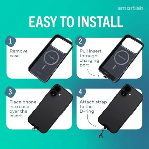 Smartish® iPhone 17 MagSafe Case + Crossbody Lanyard Strap - Thin Grip Cover with Universal Detachable Shoulder Neck Strap for Apple iPhone 17 - Black Tie Affair