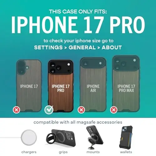 Smartish® iPhone 17 Pro MagSafe Case - Gripmunk Magnetic Slim Case [Lightweight + Protective] Thin Grip Cover with Microfiber Lining for Apple iPhone 17 Pro - Walnut Woods