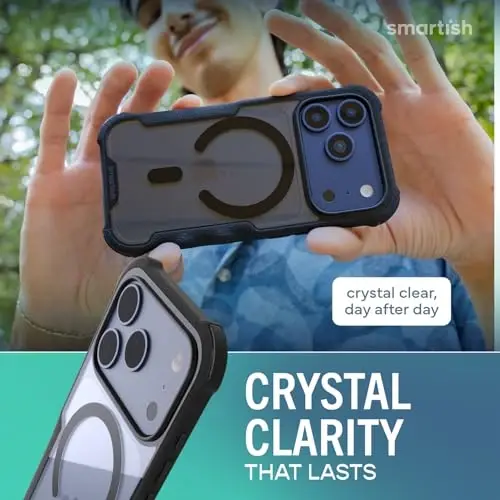 𝗨𝗟𝗧𝗜𝗠𝗔𝗧𝗘 𝗗𝗥𝗢𝗣 𝗣𝗥𝗢𝗧𝗘𝗖𝗧𝗜𝗢𝗡: Drop-tested 50 times from 6 feet, this case straight-up shrugged it off. Built-in air pockets corners act like mini shock absorbers, protecting your phone when it slips out of your hand, off the couch, or slipped-up selfie. 𝗠𝗔𝗚𝗦𝗔𝗙𝗘 𝗠𝗨𝗦𝗖𝗟𝗘: Extra-strong magnets vibe with MagSafe charging and accessories, such as wallets, car mounts, and wall mounts. Gripmunk holds tight, even on bumpy roads or grab-and-go mornings. 𝗖𝗥𝗬𝗦𝗧𝗔𝗟 𝗖𝗟𝗔𝗥𝗜𝗧𝗬 𝗧𝗛𝗔𝗧 𝗟𝗔𝗦𝗧𝗦: Anti-Yellowing material resists discoloration so your case stays crystal clear, no matter how much sun, sweat, or pocket grit it sees. Built to keep your phone looking clean, crisp, and fresh day after day. 𝗦𝗖𝗥𝗘𝗘𝗡 & 𝗖𝗔𝗠𝗘𝗥𝗔, 𝗚𝗨𝗔𝗥𝗗𝗘𝗗: Raised edges form a safety buffer around your screen and lenses. Toss it face-down, slide it across a desk, or drop it edge-first, your phone stays scratch-free and photo-ready. 𝗖𝗔𝗠𝗘𝗥𝗔 𝗖𝗢𝗡𝗧𝗥𝗢𝗟 𝗖𝗢𝗩𝗘𝗥𝗔𝗚𝗘: The upgraded design fully covers and protects the iPhone Camera Control button, giving you smooth, responsive access for snapping, zooming, and split-second selfies.