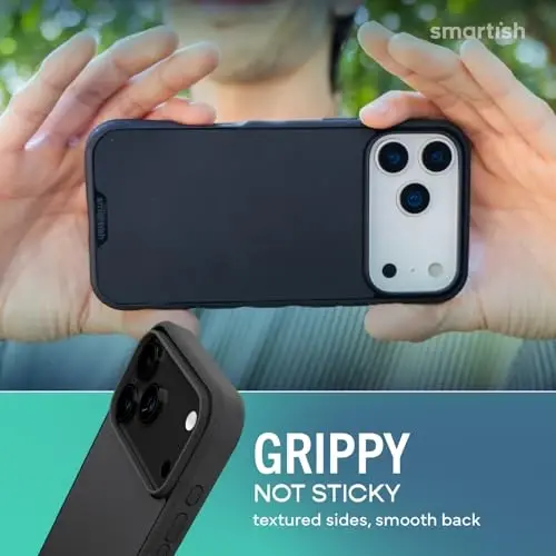 𝗨𝗟𝗧𝗜𝗠𝗔𝗧𝗘 𝗗𝗥𝗢𝗣 𝗣𝗥𝗢𝗧𝗘𝗖𝗧𝗜𝗢𝗡: Drop-tested 50 times from 6 feet, this case straight-up shrugged it off. Built-in air pockets corners act like mini shock absorbers, protecting your phone when it slips out of your hand, off the couch, or slipped-up selfie. 𝗠𝗔𝗚𝗦𝗔𝗙𝗘 𝗠𝗨𝗦𝗖𝗟𝗘: Extra-strong magnets vibe with MagSafe charging and accessories, such as wallets, car mounts, and wall mounts. Hidden behind soft inner microfiber lining, it holds tight, even on bumpy roads or grab-and-go mornings. 𝗚𝗥𝗜𝗣𝗣𝗬 𝗡𝗢𝗧 𝗦𝗧𝗜𝗖𝗞𝗬: Textured sides keep your grip solid without clinging to your pocket. Finger grooves fit naturally in your hand for full access to the Camera Control Button, comfy scrolling, snappy selfies, and fewer fumbled drops. 𝗦𝗖𝗥𝗘𝗘𝗡 & 𝗖𝗔𝗠𝗘𝗥𝗔, 𝗚𝗨𝗔𝗥𝗗𝗘𝗗: Raised edges form a safety buffer around your screen and lenses. Toss it face-down, slide it across a desk, or drop it edge-first, your phone stays scratch-free and photo-ready. 𝗦𝗟𝗜𝗠 & 𝗣𝗢𝗖𝗞𝗘𝗧-𝗙𝗥𝗜𝗘𝗡𝗗𝗟𝗬: Sleek enough for skinny jeans and tough enough for daily use, Gripmunk slides easily into pockets, purses, or gym bags without bulk, giving you real protection in a slim sleeve for your iPhone.