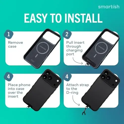 Smartish® iPhone 17 Pro Max MagSafe Case + Crossbody Lanyard Strap - Thin Grip Cover with Universal Detachable Shoulder Neck Strap for Apple iPhone 17 Pro Max - Black Tie Affair