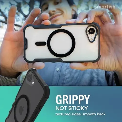 Smartish® iPhone 17e/16e MagSafe Case - Gripzilla Protective Magnetic Case for Men [Rugged + Tough] Military Grade Heavy Duty Grip Armor - Drop Tested for iPhone 17e/16e - Clearly Black
