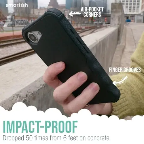 Compatible with MagSafe: Extra strong magnets built in to keep your iPhone locked in tight even during high-speed wireless charging; Gripzilla plays nice with all your MagSafe gear; seamlessly, effortlessly, and with style to spare Mighty Protective: Soft inside and tough where it counts; Easy to put on and take off with a form-fitting design. Gripzilla’s like your iPhone’s bodyguard with a teddy bear heart; Cradles your phone tight while batting away life’s curveballs Finger Grooves & Grippy Sides: Designed for a grip that’s as natural as a handshake; grooves fit your fingers like a glove, and textured sides keep your phone where it belongs; like your phone just found its perfect match. Includes a convenient lanyard loop for added portability. Shock Absorbing Air-Pocket Corners: Grippy texture is simple to clean and resist scratches with a flexible, comfortable feel. Air-pocket corners are like airbags for your iPhone; raised edges keep your screen and camera safe from life’s little oopsies Ultimate Protection: We drop-tested this bad boy 50 times from 6 feet and it just shrugged, keeping your screen and camera safe