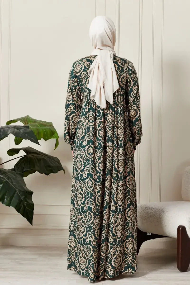 Gathered Yoke Button-Down Viscose Fabric Modest Wear Mother Dress is a special design that combines both elegance and comfort. It offers an eye-catching look with its ethnic patterned green color, while the comfort of viscose fabric provides a pleasant wearing experience throughout the day. Thanks to its button-down design, it can be easily put on and taken off. The gathered yoke detail adds movement and elegance to the dress, while it is designed in accordance with modest wear rules. This dress is a stylish and comfortable option that mothers can choose for special occasions or daily use. It can also be used as a prayer dress, so you can maintain your elegance while performing your worship. Thanks to the breathable structure of viscose fabric, it prevents sweating and keeps you fresh all day long. Ethnic patterns add an authentic touch to the dress, while green represents naturalness and peace. This dress will be an indispensable part of your wardrobe and will allow you to show off your elegance in any environment. Thanks to the gathered yoke detail, it covers body lines perfectly while creating a modern and elegant silhouette. The button-down design adds a different touch to the dress and provides ease of use. It is an ideal choice for women who seek elegance and comfort together in modest wear. This dress can be easily preferred both for special occasions and daily life. Ethnic patterned green color is suitable for use in all seasons and allows you to create different combinations. The gathered yoke detail adds dynamism to the dress, while the lightness of the viscose fabric offers a comfortable wearing experience throughout the day. Thanks to its button-down design, it can be easily put on and taken off. It is a perfect option for women who seek elegance and comfort together in modest wear. This dress will be one of the most favorite pieces of your wardrobe and will always make you feel stylish and comfortable.Product DescriptionGathered Yoke Button-Down Viscose Fabric Modest Wear Mother Dress brings elegance and comfort together with its ethnic patterned green color. Thanks to the lightness and breathable structure of viscose fabric, it offers a comfortable wearing experience throughout the day, while the gathered yoke detail and button-down design highlight your elegance. This dress, which you can prefer for both special occasions and daily use, can also be used as a prayer dress. Ethnic patterns add an authentic touch to the dress, while green represents naturalness and peace. This special design is an ideal option for women who want to achieve a modern and elegant look in modest wear. Show off your elegance in any environment with this dress, which will be an indispensable part of your wardrobe. The soft texture of viscose fabric is in harmony with your skin, while the gathered yoke detail perfectly covers your body lines. The button-down design adds a different touch to the dress and provides ease of use. This dress is an excellent choice for women who seek both elegance and comfort together in modest wear. Ethnic patterned green color is suitable for use in all seasons and allows you to create different combinations. The gathered yoke detail adds dynamism to the dress, while the lightness of the viscose fabric offers a comfortable wearing experience throughout the day. Thanks to its button-down design, it can be easily put on and taken off. This dress will be one of the most favorite pieces of your wardrobe and will always make you feel stylish and comfortable. Always feel special with this stylish and comfortable dress that you can prefer for special occasions or daily use.Product Features* Viscose fabric: Provides comfort throughout the day with its light and breathable structure.* Ethnic pattern: Adds an authentic and stylish touch to the dress.* Gathered yoke detail: Adds movement and elegance to the dress, perfectly covers body lines.* Button-down design: Easy to put on and take off, gives the dress a different look.* Modest wear: Designed in accordance with modest wear rules.* Green color: Represents naturalness and peace, suitable for use in all seasons.* Mother dress: A stylish option that mothers can choose for special occasions or daily use.* Prayer dress: An option where you can maintain your elegance while performing your worship.* Comfortable fit: Offers a comfortable wearing experience throughout the day.* Versatile use: Can be easily preferred both for special occasions and daily life.Additional InformationThis dress stands out with the comfort of viscose fabric and the elegance of ethnic pattern. Thanks to the gathered yoke detail and button-down design, it offers both a modern and elegant look. It is an ideal option for women who seek elegance and comfort together in modest wear. It is recommended to follow the washing instructions on the label for the product to be long-lasting. Different size options are available. Avoid using bleach and iron at low temperature to keep your product like the first day for a long time. This special design dress, which will complete your elegance, will be an indispensable part of your wardrobe.