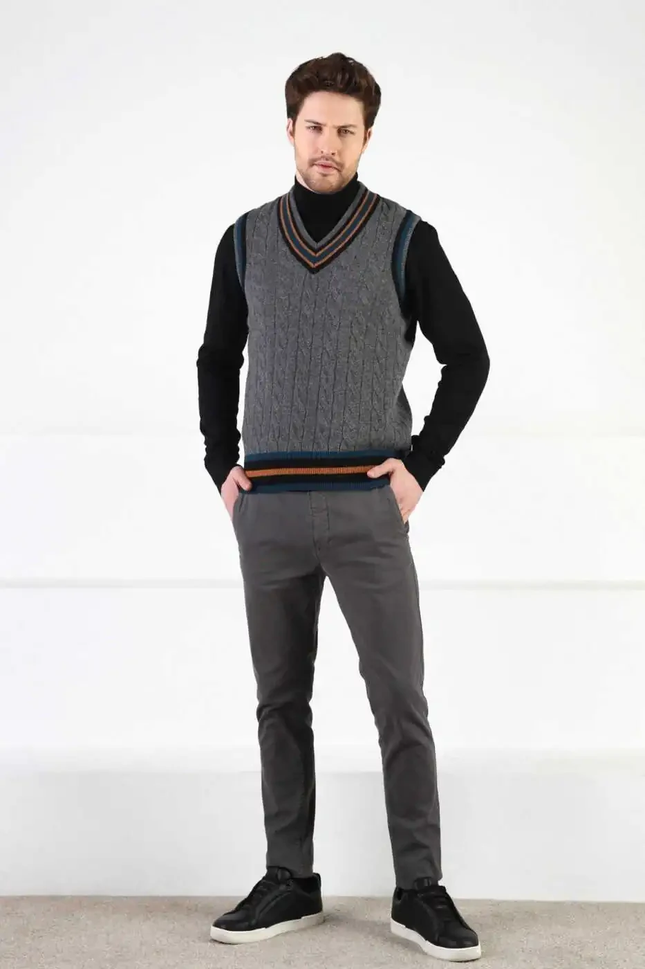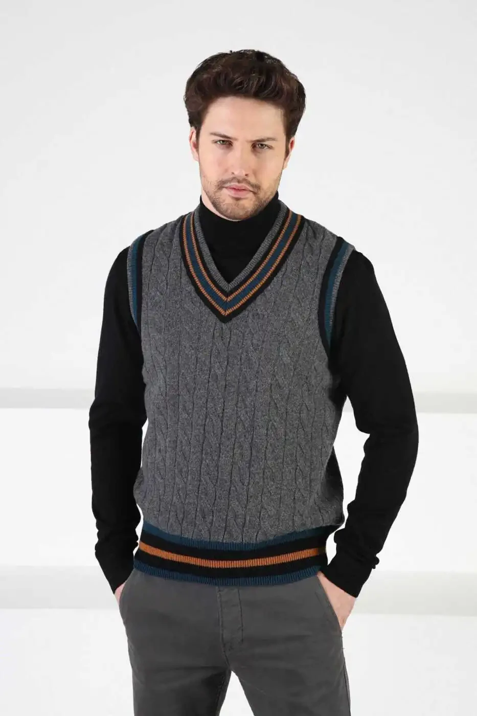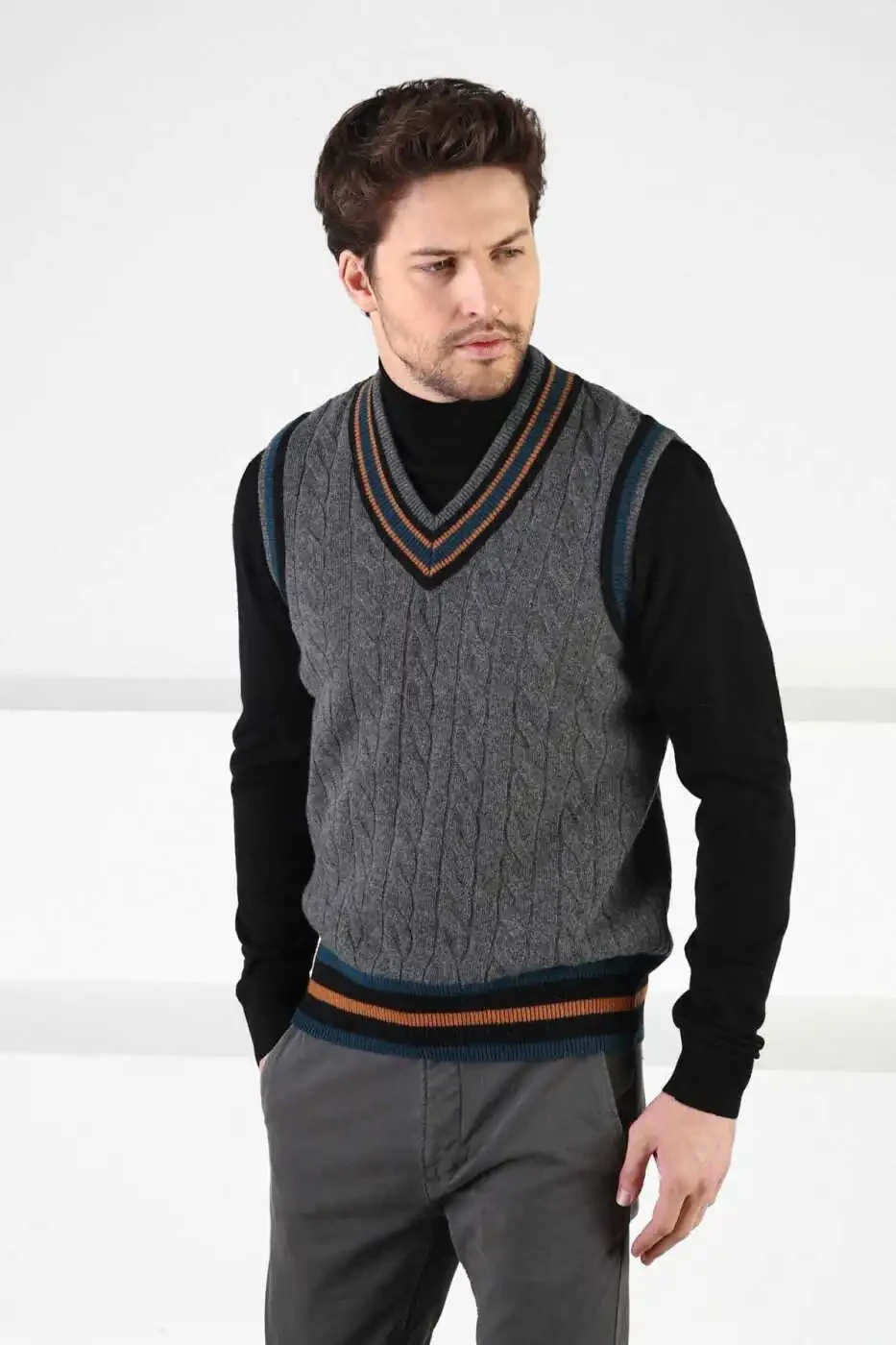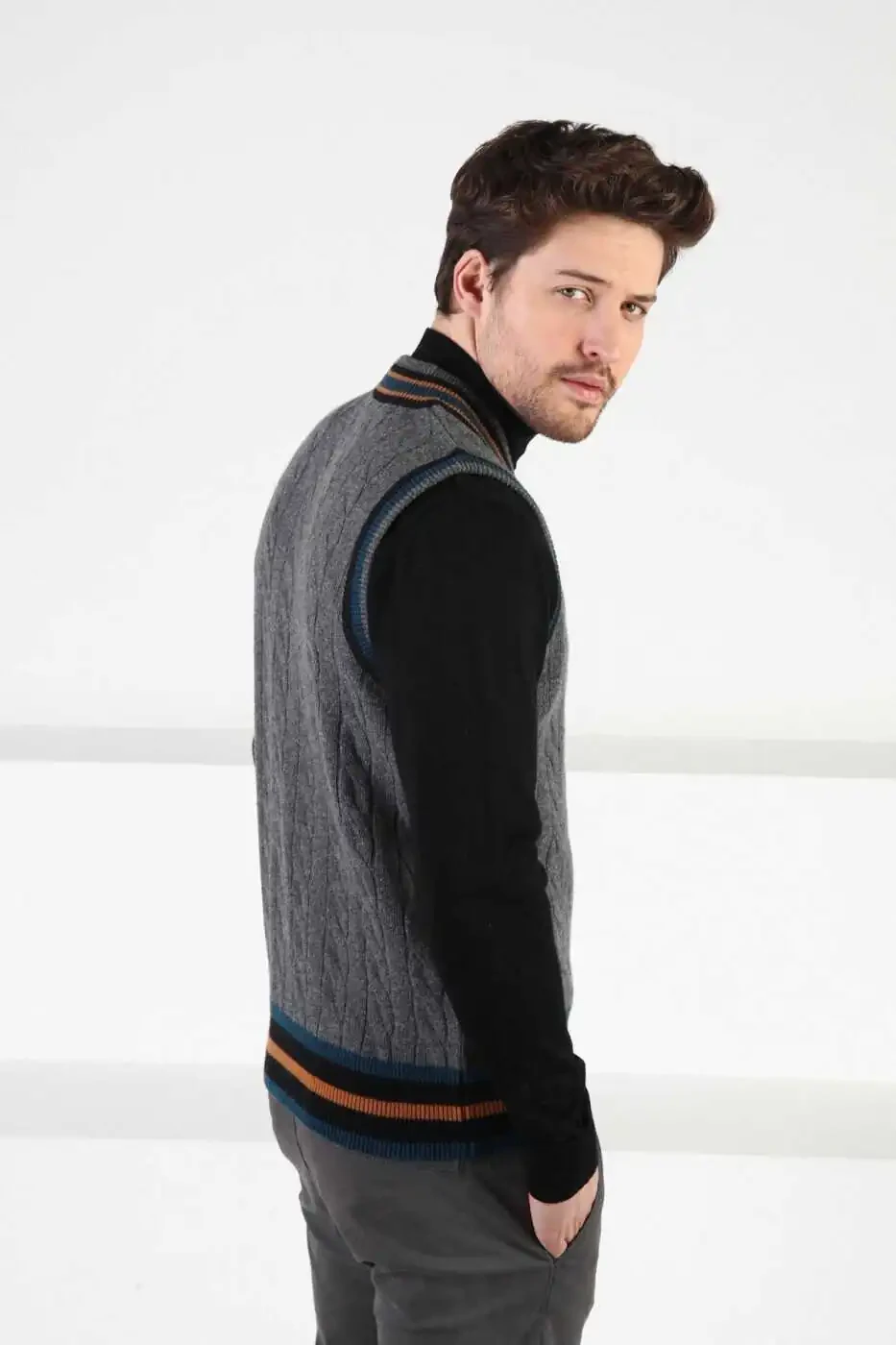 Combining style and warmth, this smoked knit V-neck 100% lambswool men's sweater will keep you warm and stylish on cold winter days. Providing all-day comfort with its soft and comfortable texture, the sweater will adapt to every style with its elegant V-neck. Made from natural lambswool, it is breathable and has heat insulation properties. Its smoked color will add style to your style and allow you to create different combinations.