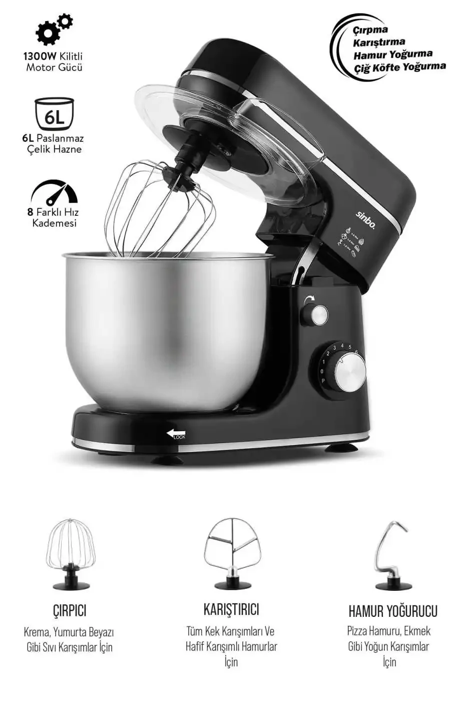 SMX-2769 Stol Usti Mikser 1300 Vt quvvat va 6 Litr hajmi bilan o'z oshxonangizda yangi davrni ochishga tayyor. Professional sifatli pishirish tajribasini taqdim etadigan ushbu mikser, xamir yoğurishdan tortib, ko'pirtirishgacha, tort va pirog tayyorlashdan tortib, krem tayyorlashgacha barcha ehtiyojlaringizni qondiradi.