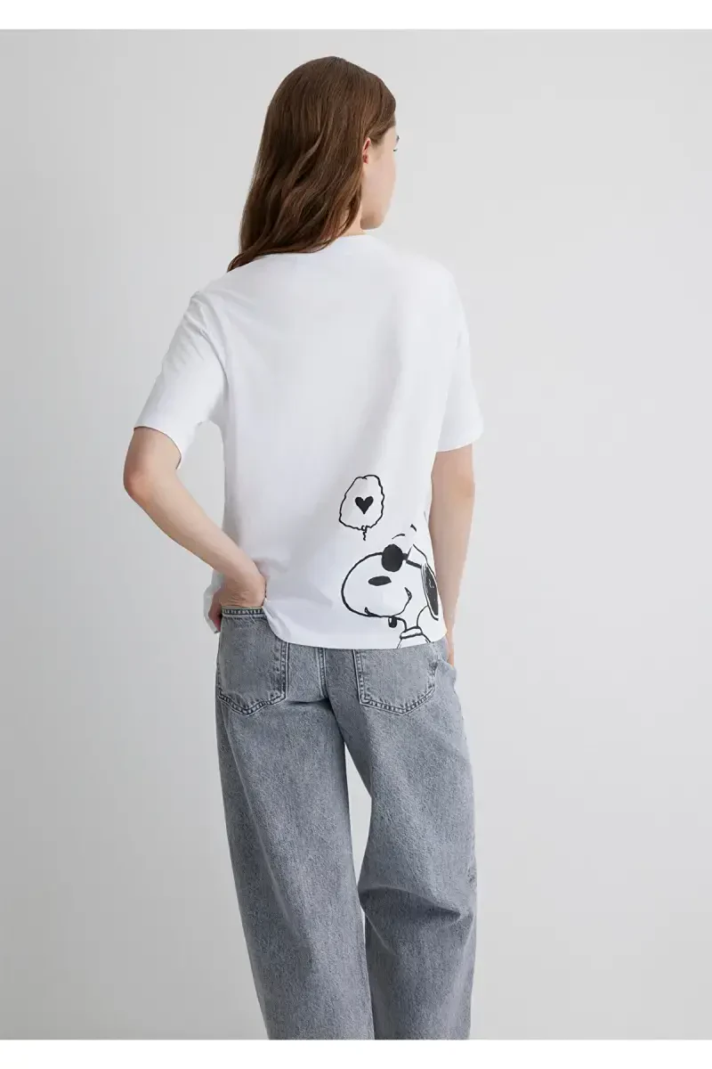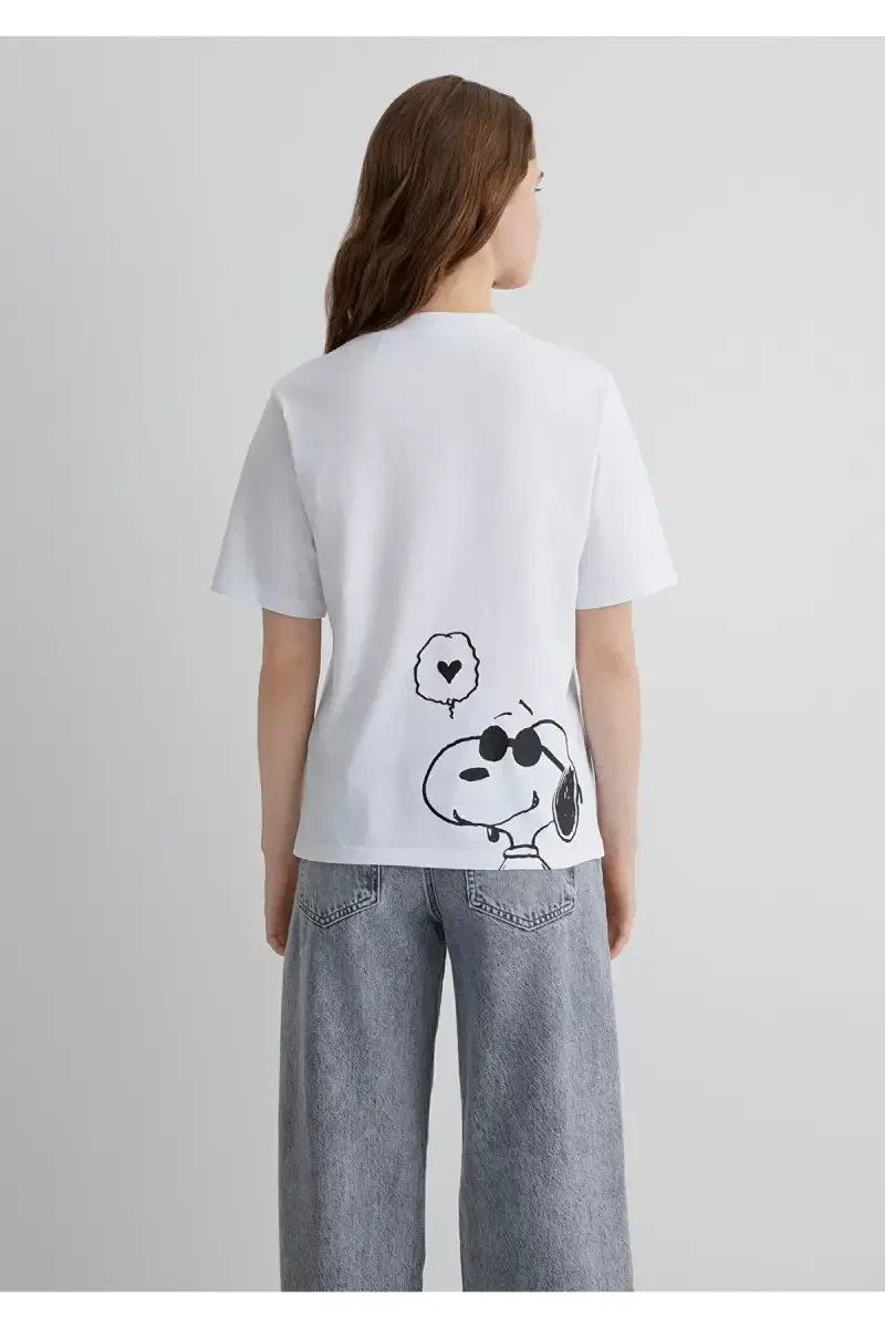 Snoopy Baskılı Beyaz Tişört ile gardırobunuza eğlenceli ve sevimli bir dokunuş katın! Bu özel tasarım tişört, Snoopy ve arkadaşlarının neşeli dünyasını üzerinizde taşımanızı sağlayacak. Yüksek kaliteli malzemesi ve dikkat çekici baskısıyla hem rahat hem de şık bir görünüm sunar. Günlük kullanım için mükemmel bir seçenek olan bu tişört, Peanuts hayranları için kaçırılmaması gereken bir parça. Snoopy’nin ikonik kırmızı kulübesi ve sevimli karakteri, tişörte özgün bir hava katarken, siz de stilinizle fark yaratacaksınız.Bu tişört, %100 pamuklu orta ağırlıkta kumaştan üretilmiştir, bu sayede gün boyu konforlu bir kullanım sunar. Pamuklu yapısı, cildinize nefes aldırır ve terlemeyi önler. Bisiklet yakalı ve kısa kollu tasarımı, tişörtü her mevsim giyilebilir kılar. Ön yüzündeki Snoopy baskısı ve arka yüzündeki Snoopy karakteri, tişörtü diğerlerinden ayırır ve dikkat çekici bir görünüm sağlar. Loose fit kesimi sayesinde rahat bir kullanım sunan bu tişört, hareket özgürlüğünüzü kısıtlamaz.Snoopy ve Charlie Brown’un unutulmaz dostluğundan ilham alınarak tasarlanan bu tişört, Peanuts evrenine olan sevginizi yansıtmanızı sağlar. İster günlük kombinlerinizde ister özel etkinliklerde giyebileceğiniz bu tişört, tarzınıza eğlenceli bir dokunuş katacaktır. Snoopy Baskılı Beyaz Tişört, sadece bir giysi değil, aynı zamanda bir yaşam tarzıdır. Peanuts’ın eğlenceli dünyasına adım atın ve Snoopy’nin neşesini her an yanınızda taşıyın.Mankenin ölçüleri göz önünde bulundurularak tasarlanan bu tişört, üzerinizde mükemmel bir duruş sergiler. Normal bel kesimi ve standart kol uzunluğu, tişörtü her vücut tipine uygun hale getirir. Türkiye'de üretilen bu tişört, yüksek kalite standartlarına sahiptir ve uzun ömürlü kullanım sunar. Snoopy Baskılı Beyaz Tişört ile hem rahatlığın hem de şıklığın keyfini çıkarın. Bu eşsiz tişörtü gardırobunuza ekleyerek tarzınızı bir adım öteye taşıyın!