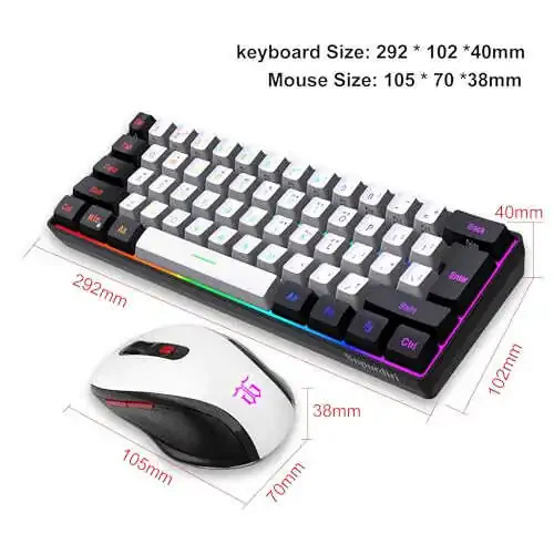 Snpurdiri 2.4G Беспроводной игровой клавиатура и мышь Комбо - Мини 60% механическая клавиатура с RGB-подсветкой и эргономичная вертикальная мышь