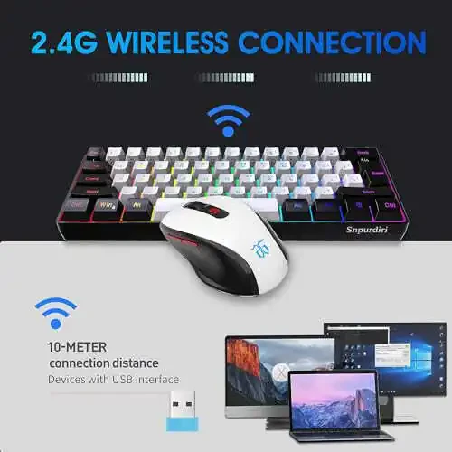 Snpurdiri 2.4G Simsiz O'yin Klaviaturasi va Sichqoncha Kombosu - Mini 60% Mexanik Hisli RGB Orqa Fonli Yoritishli Klaviatura va Ergonomik Vertikal Sichqoncha