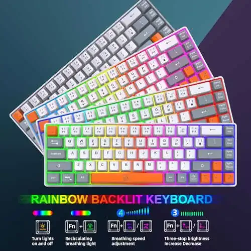 Snpurdiri 60% Беспроводной Игровой Комплект Клавиатура и Мышь - Радужная Подсветка, Аккумулятор 2000mAh, Мини-механическая Клавиатура + Популярные RGB Мыши для Игр, Офис (Серый-Белый-Оранжевый)