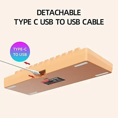 60% keyboard, gaming keyboard, mechanical feel, RGB lighting, compact keyboard, portable keyboard, cream orange, PC Mac compatible, plug and play, WASD direction keys