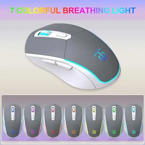 Snpurdiri 60% Simsiz O'yin Klaviaturasi va Sichqoncha To'plami - Kamalak Rangli Orqa Fonli Qayta Zaryadlanuvchi 2000mAh Batareya, Mini Mexanik Hisli Klaviatura + Mashhur RGB Sichqoncha O'yinlar, Ish Ofisi (Kulrang-Oq-To'q sariq)