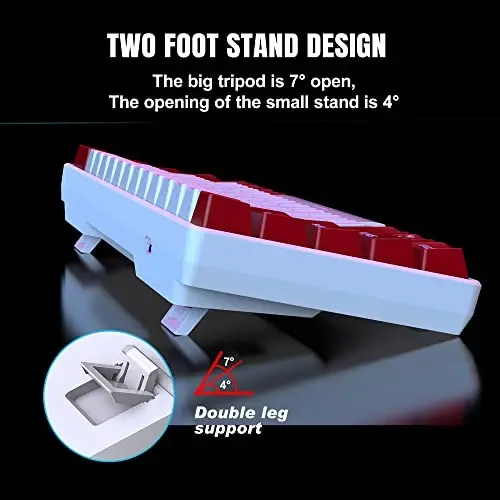 Благодаря полной функции защиты от ореолов даже при одновременном нажатии нескольких клавиш все нажатия клавиш точно обнаруживаются. Эта функция является большим преимуществом, особенно в сложных игровых комбо и ситуациях, требующих быстрой реакции. Все 61 клавиша не конфликтуют, поэтому у вас не возникнет никаких проблем во время игры. Эргономичные двухцветные колпачки клавиш с подвеской и двухфутовые опоры делают клавиатуру удобной даже при длительном использовании. Специальная конструкция колпачков клавиш обеспечивает комфорт ваших пальцев и снижает усталость. Благодаря регулируемому углу размещения вы можете наклонять клавиатуру в соответствии со своими предпочтениями и использовать ее в наиболее удобном положении.