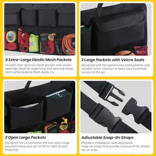 Snuopfy Araba Bagaj Düzenleyici, 8 Geniş Depolama Çantası ile Arka Koltuk Asma Düzenleyici - SUV, Kamyon, Van İçin Bagaj Düzenleyici - Alan Tasarrufu Uzmanı