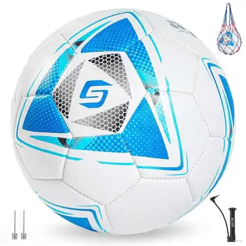 The included pump and needles allow you to easily inflate the ball and use it as you wish. This ball is designed to meet the training and playing needs of football players of all levels. Its reusability and construction from high-quality materials make this soccer ball a perfect gift option for any football enthusiast.