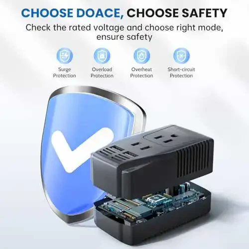 DoAce Sayohat Voltaj Konvertori bilan dunyoning istalgan joyida tinchlik va ishonch bilan sayohat qiling!